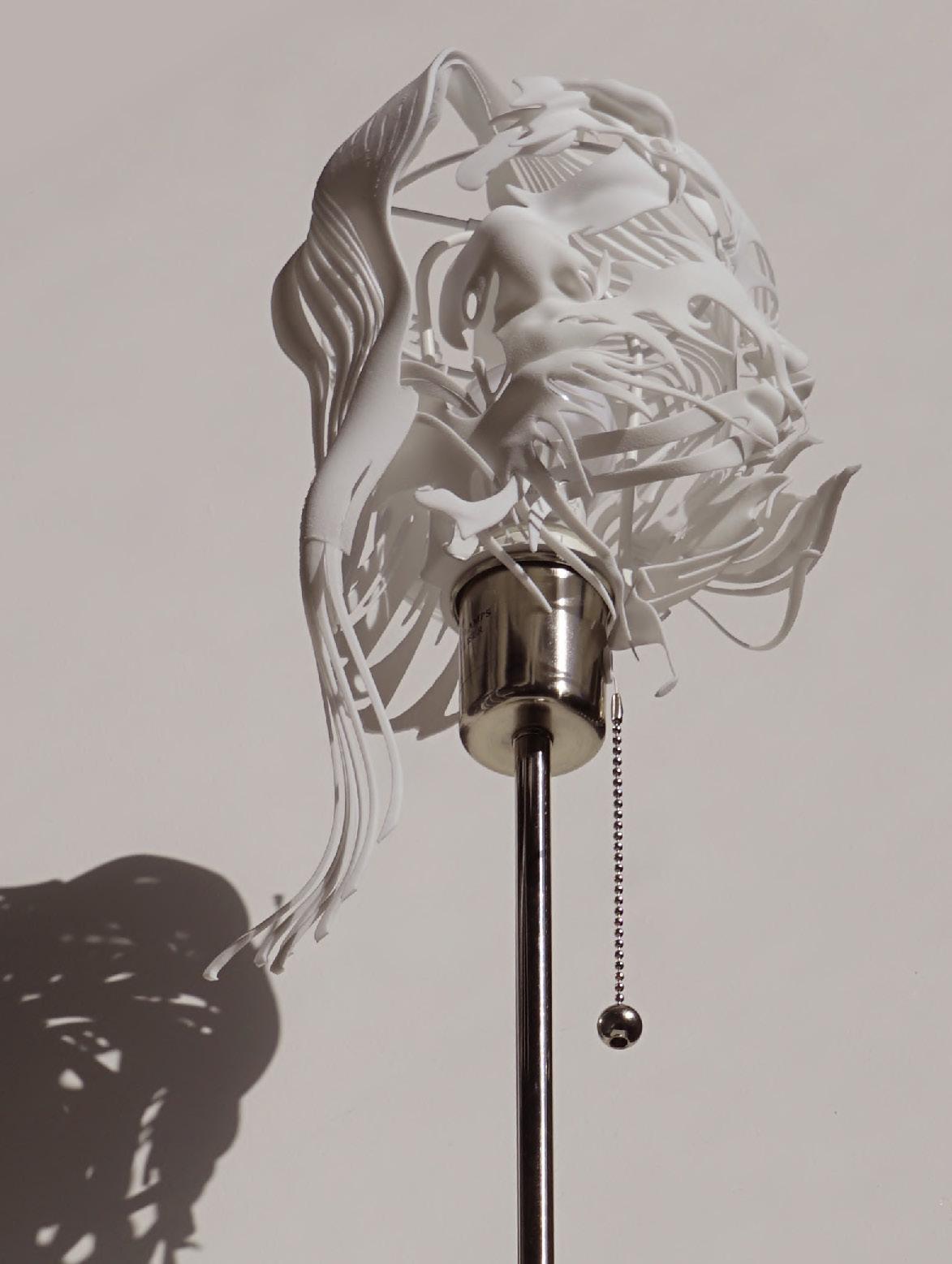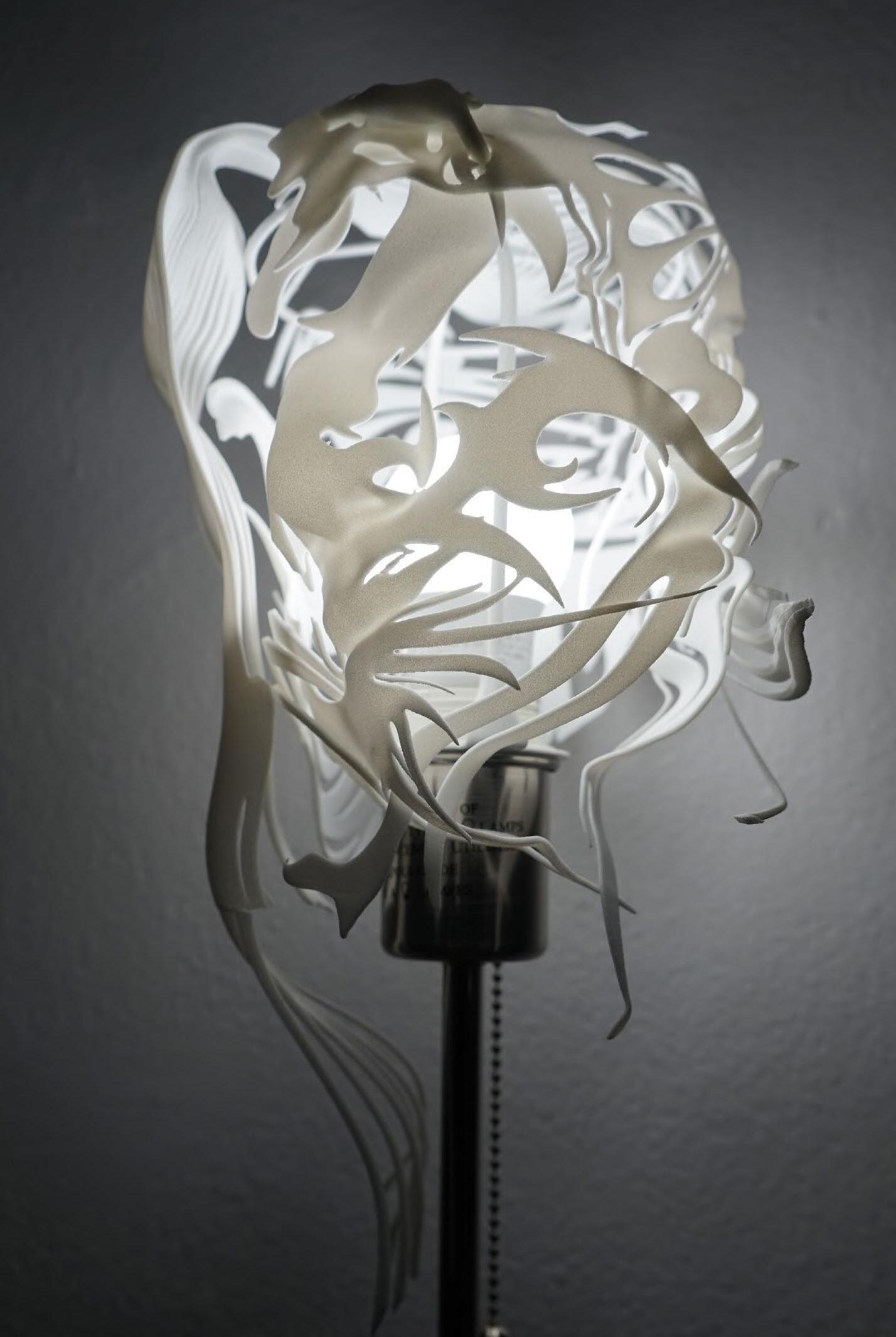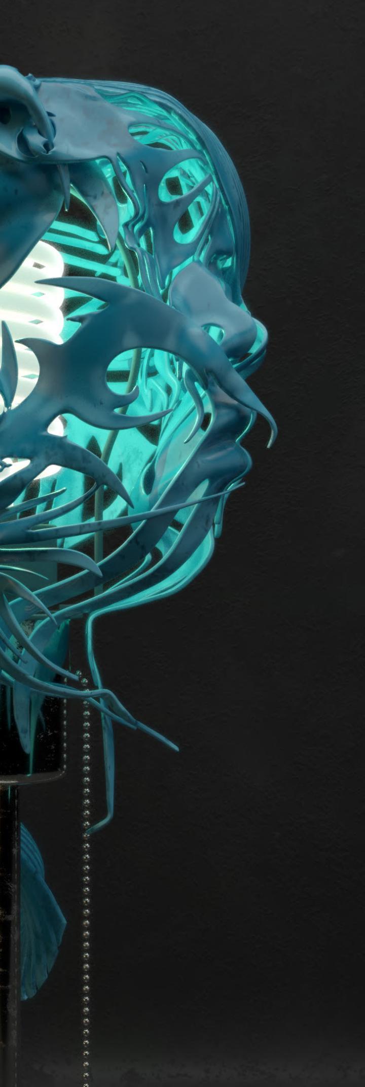 The process began with 3D scanning techniques, transforming human heads into high-fidelity digital models. These scans served as the foundation for a narrative that reimagines history through a combination of intricate geometry, texture, and digital manipulation. Using a variety of digital tools, the human head models were artistically altered and combined into innovative designs, resulting in lamps that blur the line between the organic and the virtual.