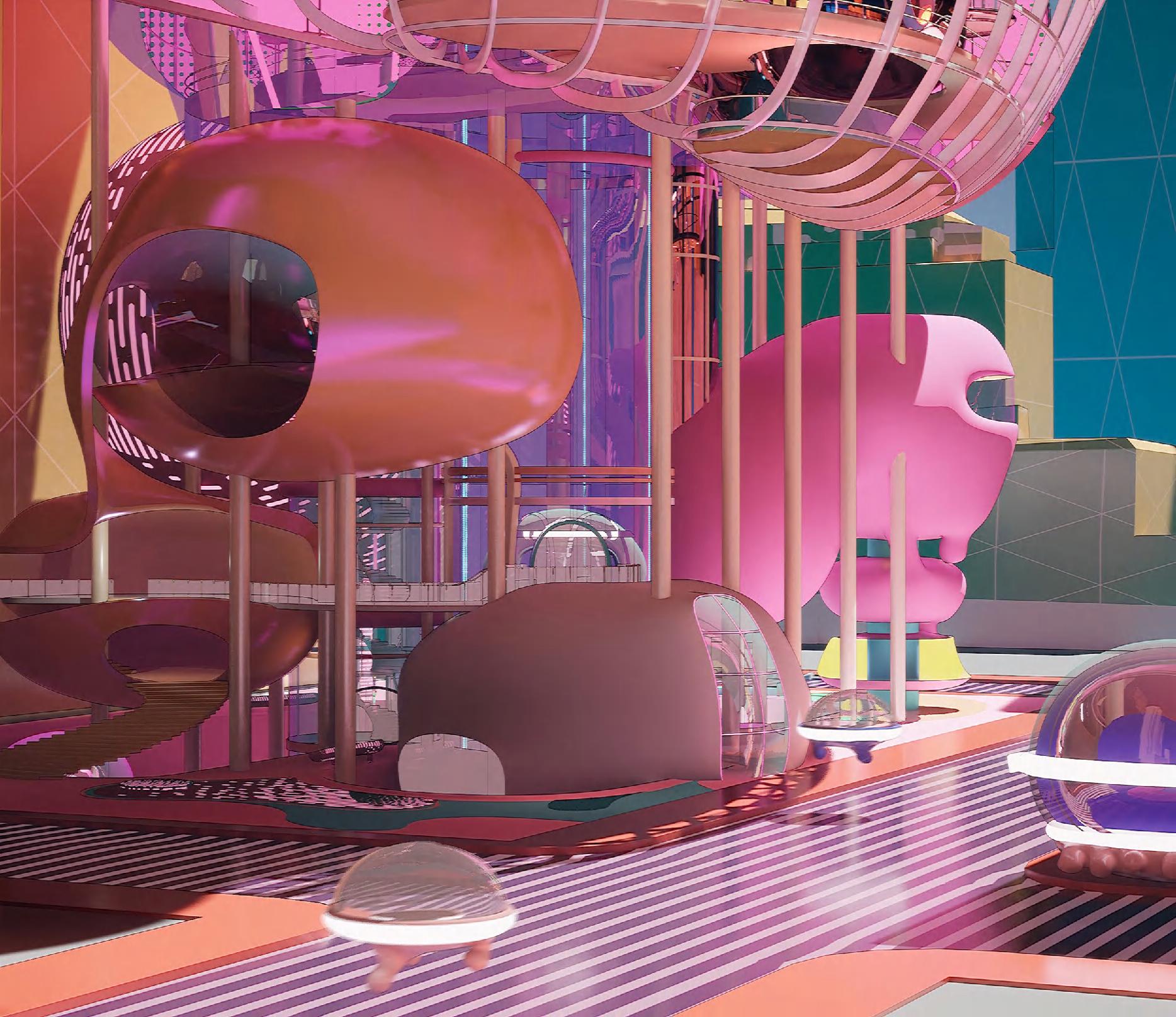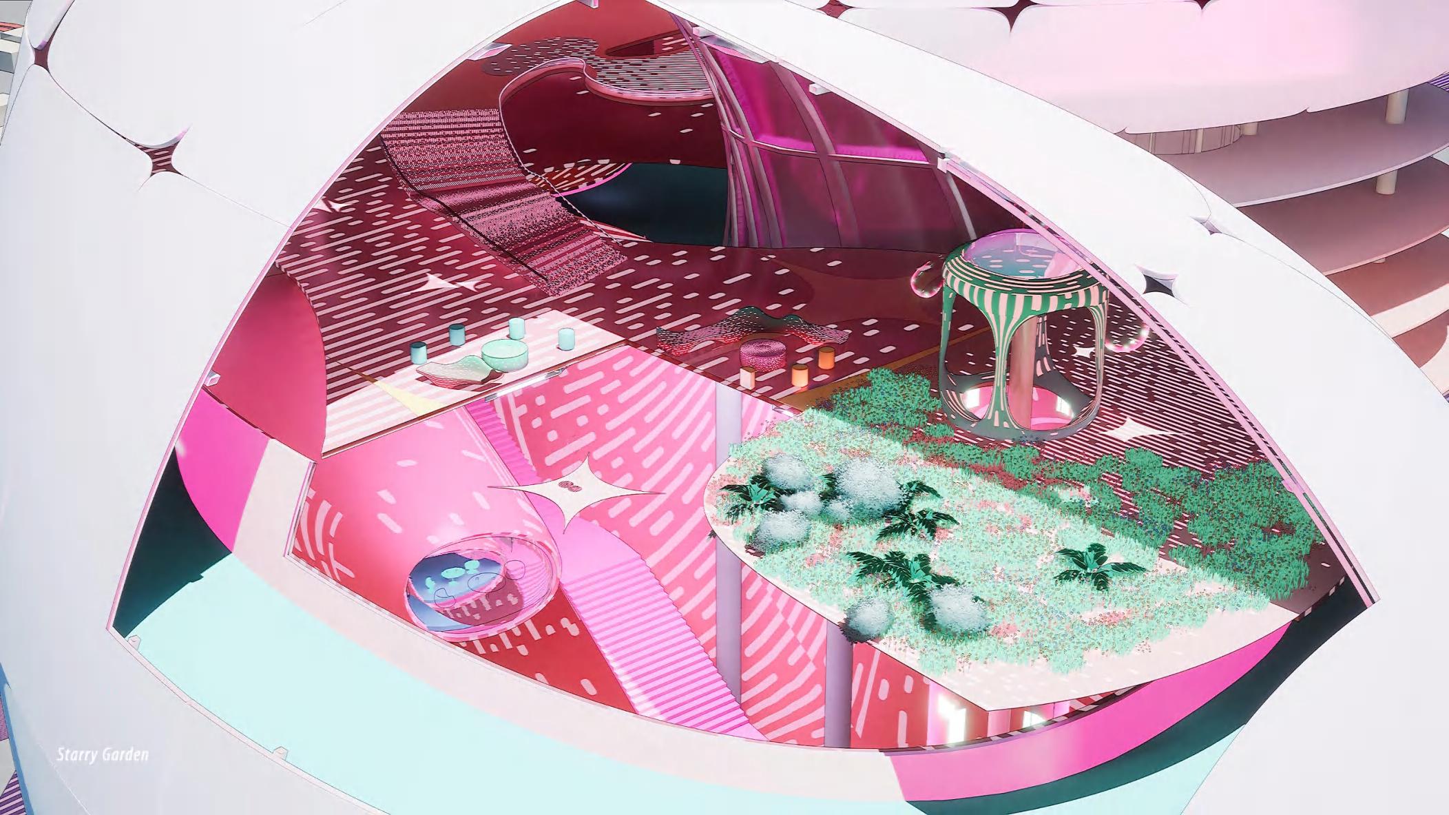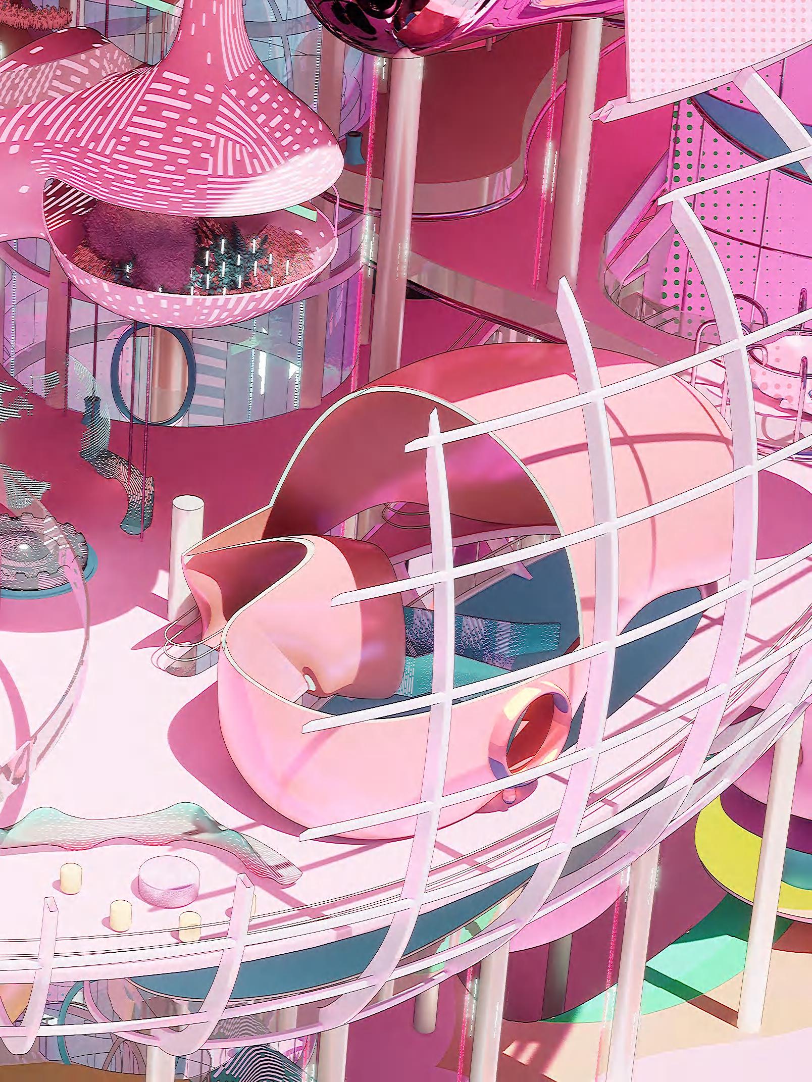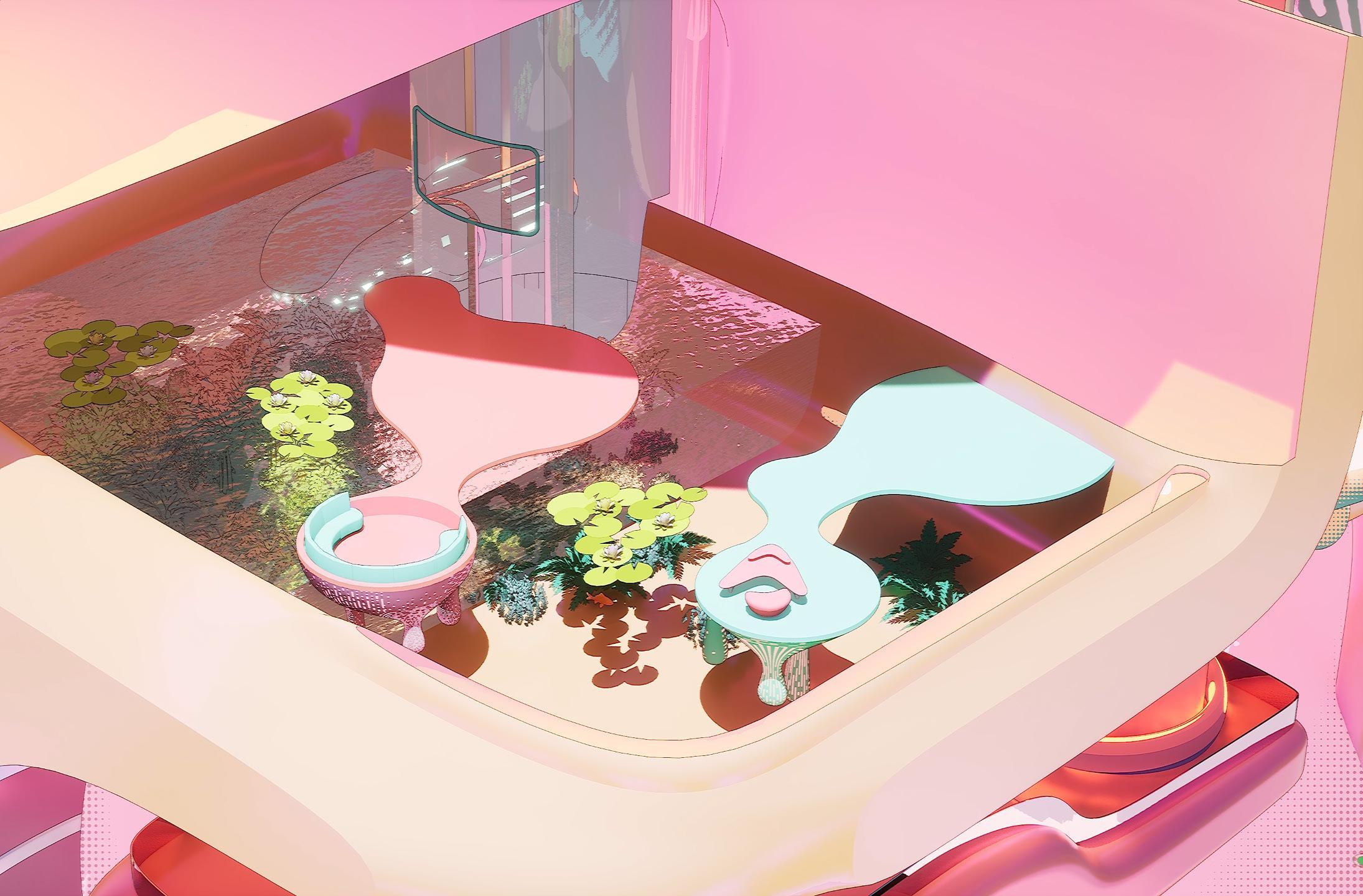 Rather than limiting technology to an aesthetic layer, PinkPunk seeks to position it as a driving force—a tool that embodies both form and function to actively influence design processes. The project prompts a key question: if these advanced technologies become feasible, how might they transform our approach to architectural design? The building’s distinctive, almost futuristic form is a result of the collaborative interplay between human creativity and AI technology, blending the precision of digital intelligence with the intuitive, experiential insights of human designers.