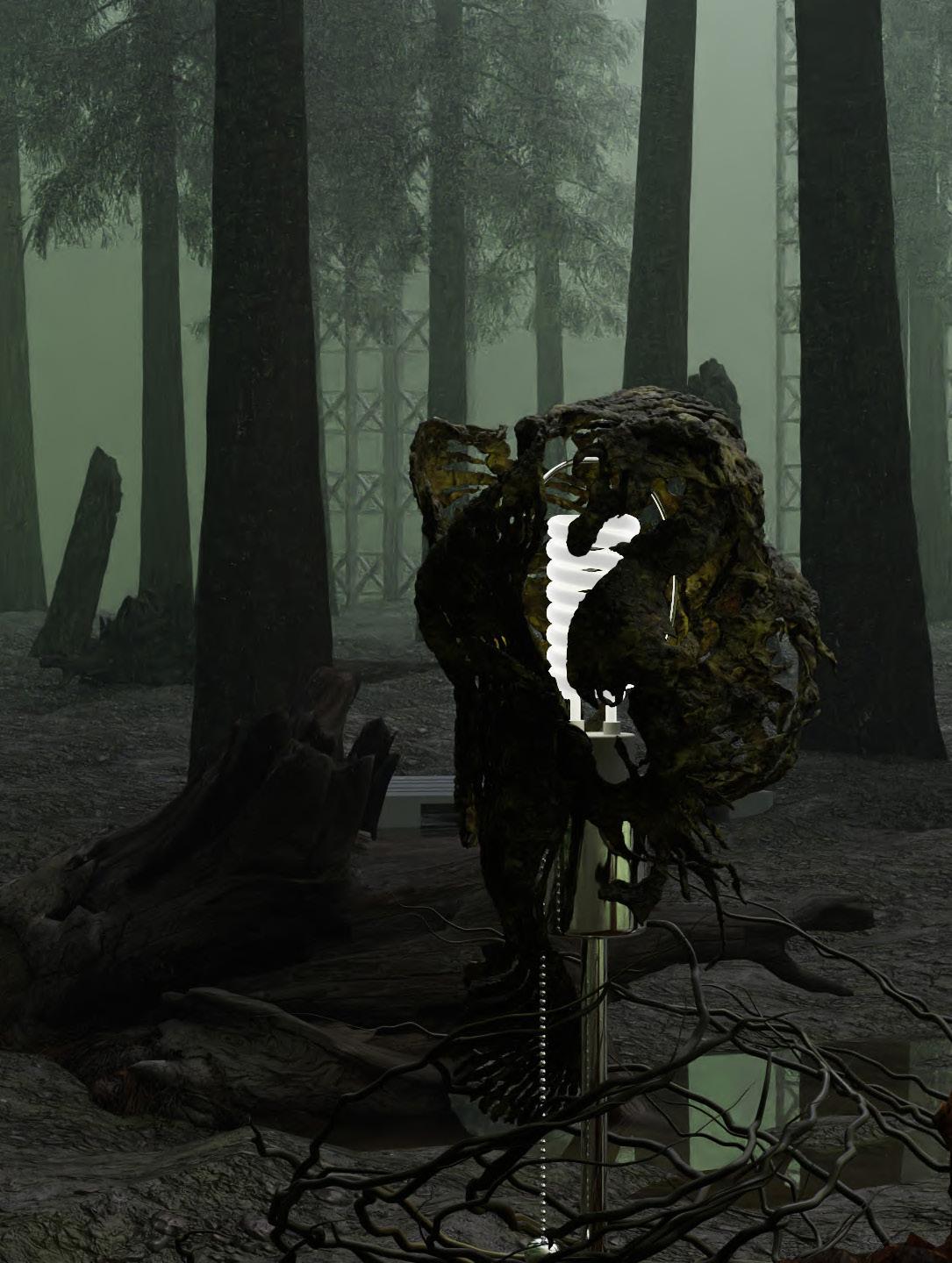 Once printed, the lamp transitioned from a digital creation to a tangible physical object. It began to interact with its surroundings, moving beyond the confines of a 27” screen render. The lamp was exhibited across various locations on the SCI-Arc campus, and with each new setting, it developed a unique narrative, shaped by its context. These evolving narratives were then brought back into the digital realm, where the lamp was re-rendered to amplify and reinterpret the stories it had absorbed. This process highlights the fluid exchange between physical and digital realities, enriching the lamp’s character and its ability to engage with its environment.