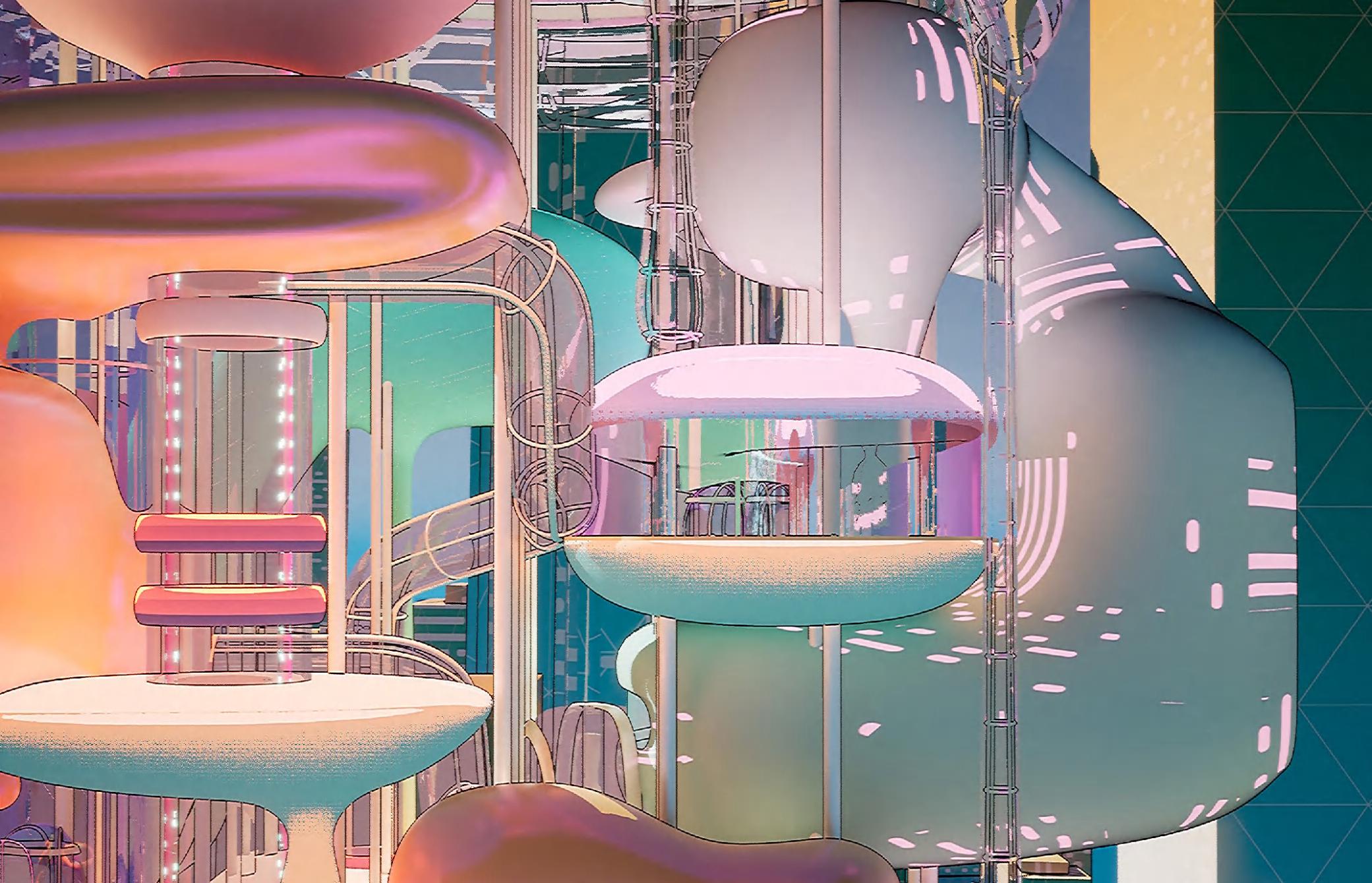 By integrating Midjourney’s image-generation technology, PinkPunk challenges the limits of conventional architecture, showcasing how AI can influence both the conceptual framework and visual development of design. These advanced tools help the project redefine architectural norms, moving beyond traditional paradigms to envision buildings that are not only functional but also responsive, sustainable, and adaptive to evolving environmental demands. PinkPunk ultimately pioneers new possibilities for urban design, offering a blueprint for resilient, future-oriented cities that harmoniously blend ecological consciousness with innovative technology.