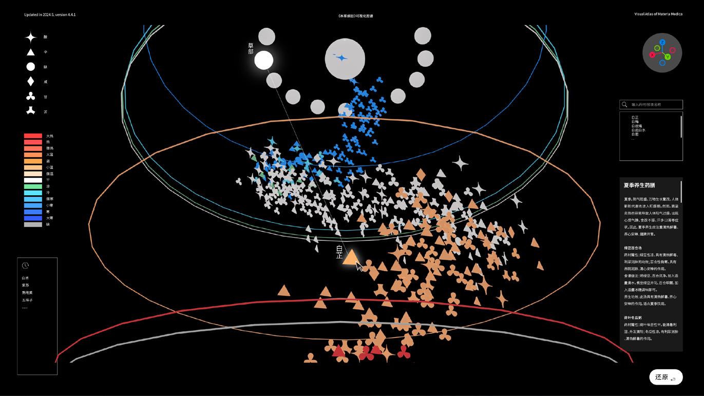 By structuring a multi-dimensional herbal database, the research integrates TCM theories such as Yin-Yang, Five Elements, and Hetu Luoshu to develop an interactive, data-driven visualization system.