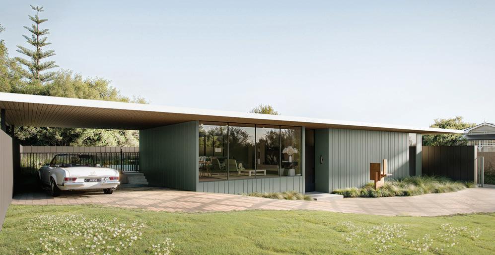现代箱型风格以大体块、方盒造型堆叠、交错排列,打造出极具 视觉冲击力的现代住宅。新西兰本地设计赋予了现代箱型风格 更多个性,通过材质、色彩与高度变化,增强了层次感。垂直铺 设的Stria™外墙板与水平铺设的Linea™ 护墙板形成材质对比, 清晰区分每一个“箱子”造型。