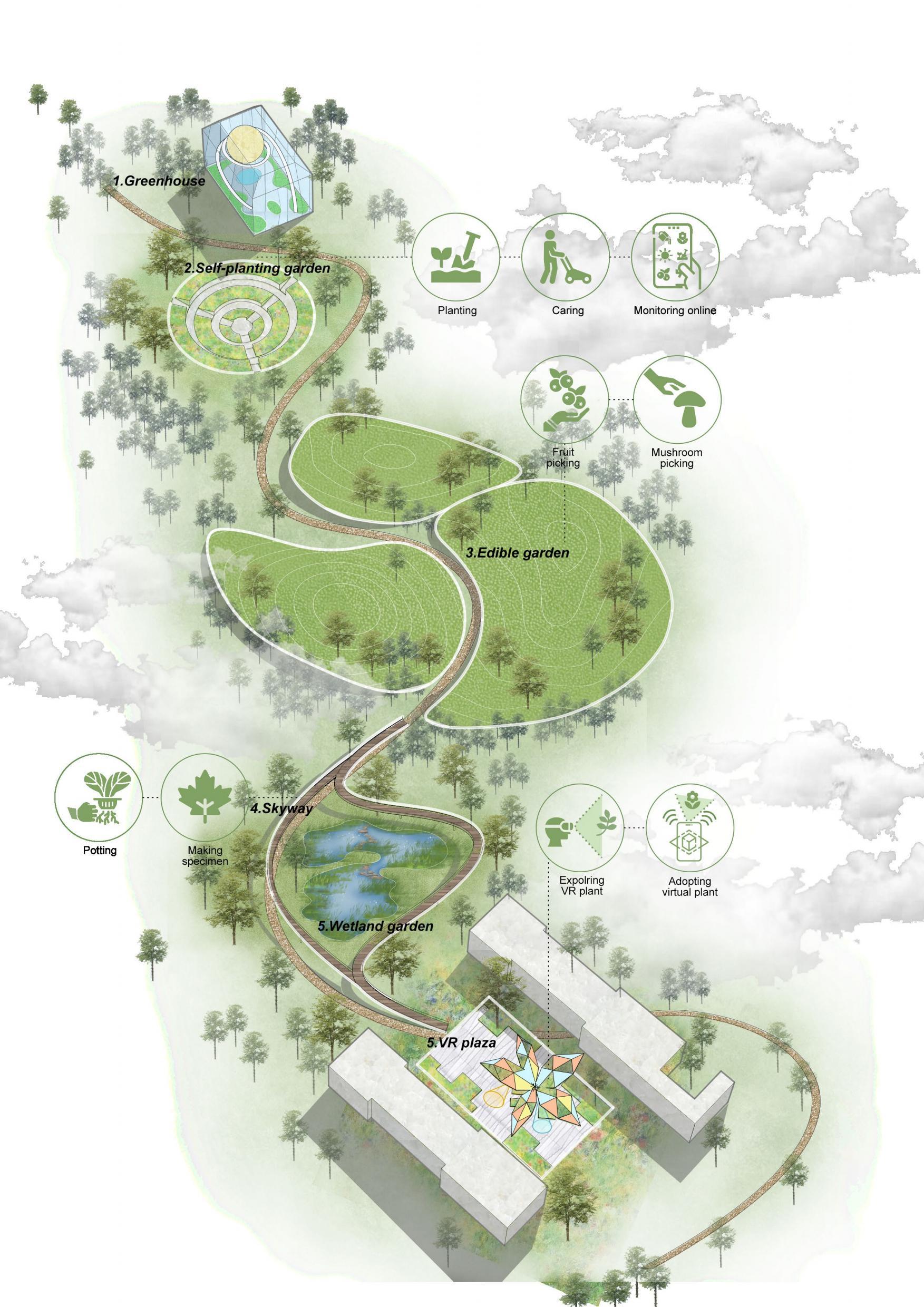 School Housing Greenhouse Museum Grilles Entrance Path Activity areas