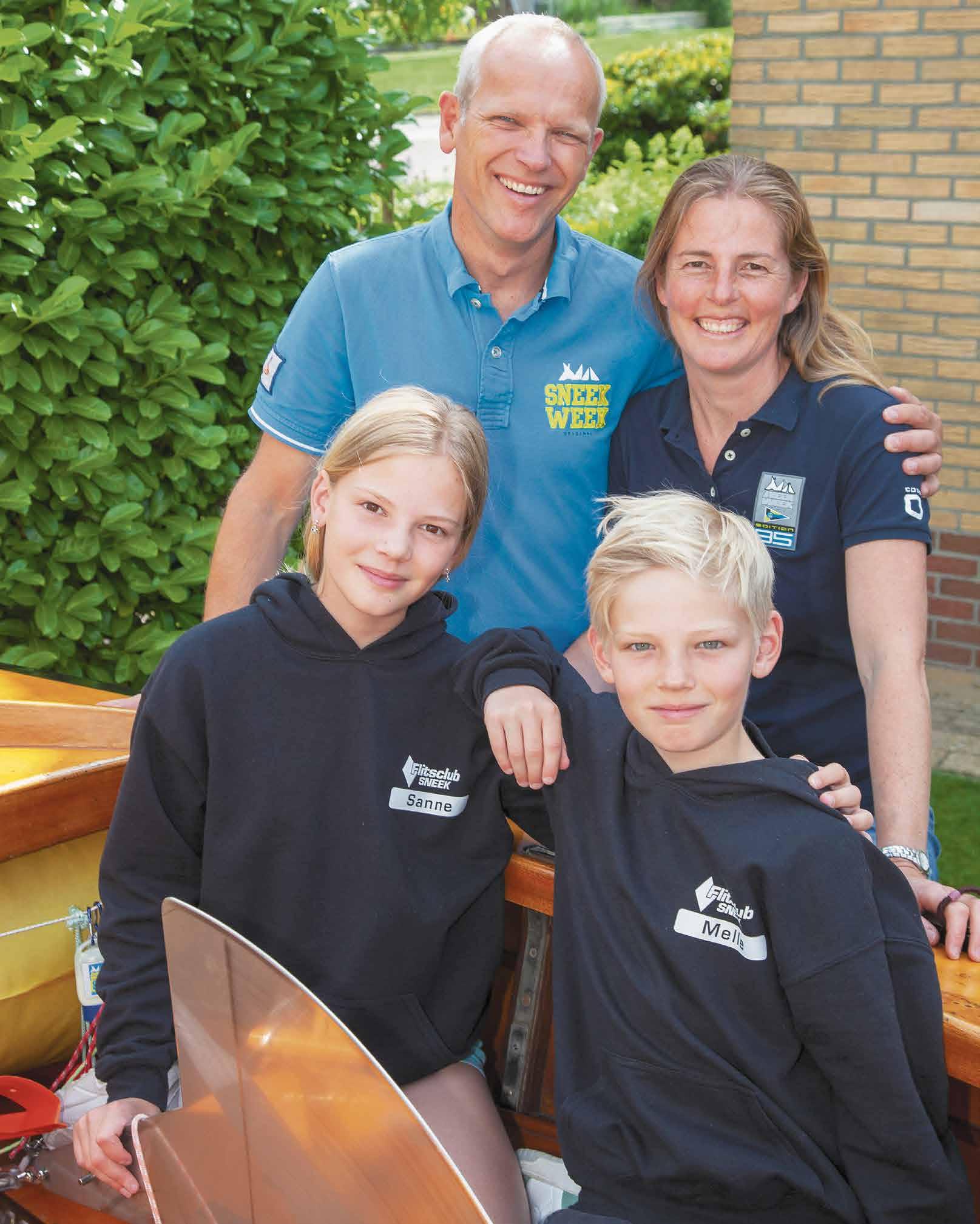 Betty Gietema en Wouter Boekel zijn verweven met de watersport in het algemeen en met de Sneekweek in het bijzonder. Negen Sneekweekborden hangen er aan de muur in de woonkamer in Scharnegoutum, het equivalent van evenveel hoofdprijzen die ze afzonderlijk van elkaar wonnen. Beiden zeilen niet alleen, ze zijn ook zeer actief binnen de KWS, organisator van de Sneekweek. Betty als trainer en coördinator jeugdzeilen en Wouter als wedstrijdleider. Met zulke voorbeelden en genen is het niet zo gek dat ook de twee spruiten Sanne (11) en Melle (10) zijn behept met het zeilvirus. Zij vormen een team in de Flits.