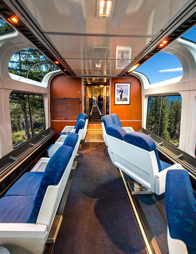 Get up, stretch your legs and enjoy all the train has to offer, including dramatic views of the passing scenery from the Lounge Car.