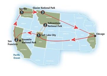 • One-way Amtrak® in Coach accommodations from Chicago to Salt Lake City; Salt Lake City to San Francisco; San Francisco to Seattle; Seattle to Glacier National Park; Glacier National Park to Chicago in Coach accommodations on the California Zephyr®, Coast Starlight®, and Empire Builder®