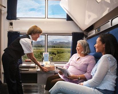 Complimentary breakfast, lunch and dinner in Amtrak’s Dining car is included with First Class sleeping car accommodations during your time on the train. Enjoy great food and panoramic views on Amtrak’s resturant on the rails.