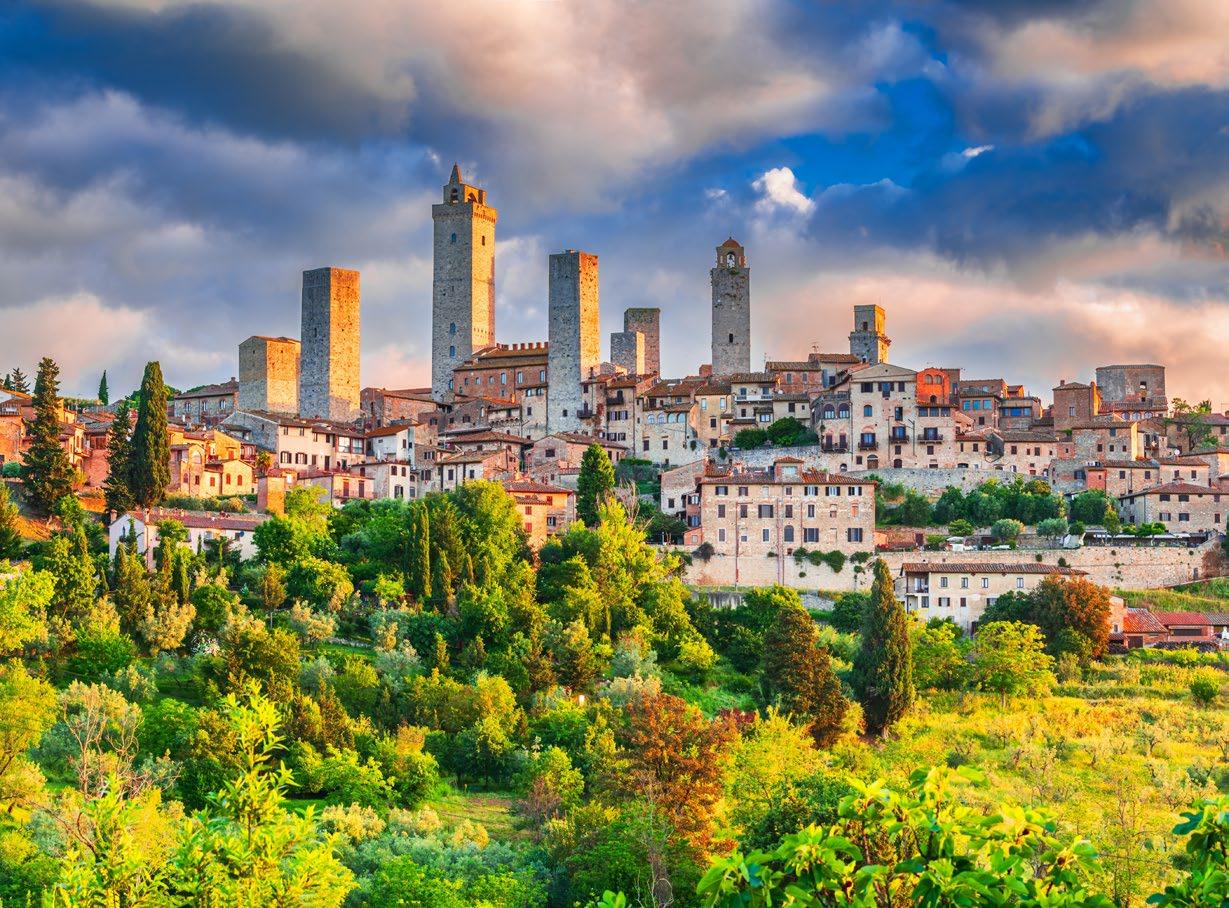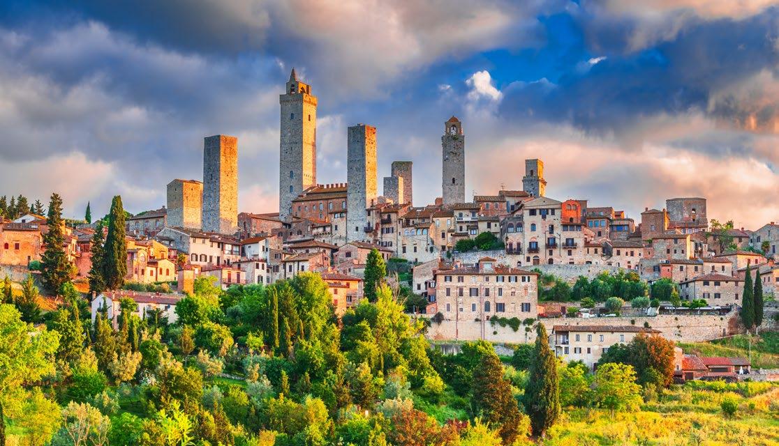 Your full-day excursion through Tuscany begins with a tour of Pisa, admiring the famous Tower of Pisa. Afterwards, drive to a rustic winery in Chianti and enjoy a delicious Tuscan lunch and wine tasting. Your afternoon includes strolling through the medieval village of San Gimignano and the cobblestone streets of Siena before returning to Florence in the evening. (Overnight in Florence)