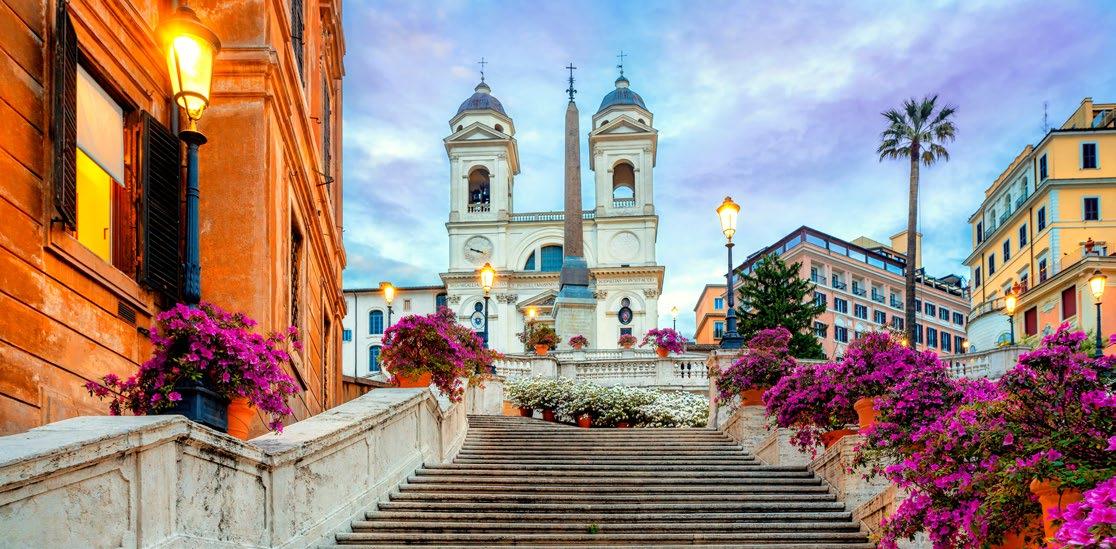 Journey through verdant countryside arriving in ancient Rome, Italy’s cosmopolitan capital. Soak up history, culture, and glorious architecture dating back 25 centuries. Check into your centrally located hotel for an initial stroll along Via Condotti and the Spanish Steps before refueling with gelato.