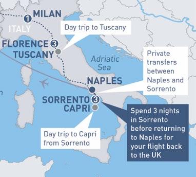 • 3 nights’ hotel accommodation with breakfast in Naples