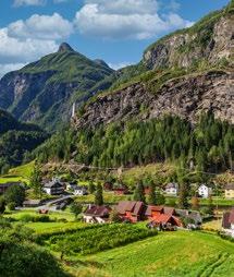 Travel through dramatic landscapes today on the Norway in a Nutshell route. Depart Bergen by rail to Voss, then transfer by coach through Nærøy Valley to Gudvangen. Cruise the UNESCO-listed Nærøyfjord before arriving in Flam, where you’ll spend the night in this picturesque fjord-side village.