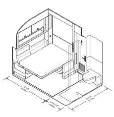 • Modular leather L-shaped couch by day and a Murphy bed for two by night