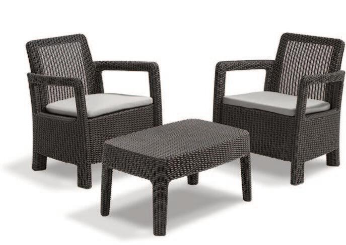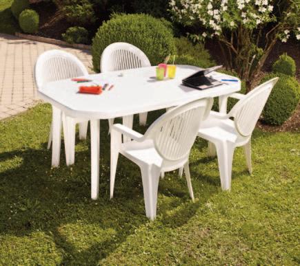 SILLÓN MÁSTER Resina. 67x60x82 cm. 016867 Color antracita. 016868 Color blanco. 31’95 016664 MESA JARDÍN PORTOFINO ALUMINIO Y CRISTAL 180x100x75 cm.
