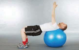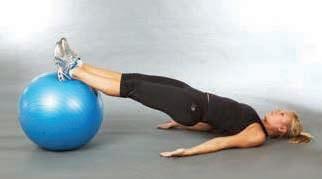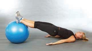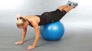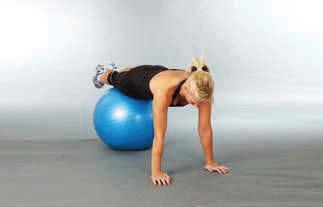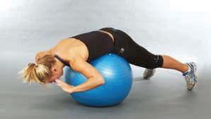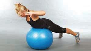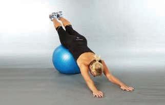 extend the legs so that the body is supported by the hands on the ball and the feet from below