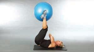 lower ball behind head and legs to floor (4 counts)