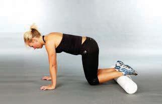 kneeling on a mat place one supporting hand on a foam roller to the side of the body whilst maintaining a neutral spine