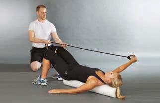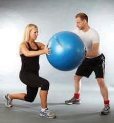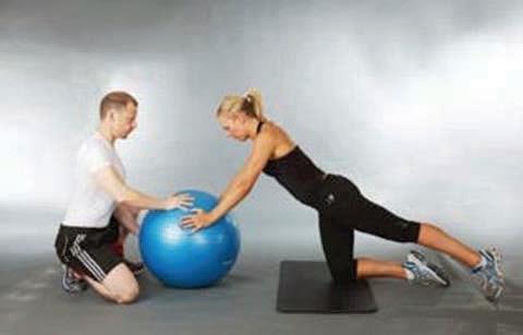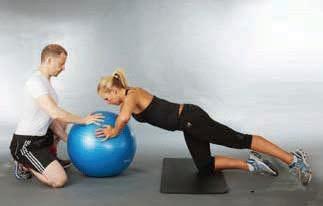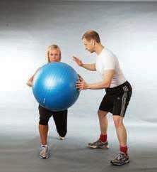 the trainer now supplies manual resistance to the ball with the aim of challenging the client’s alignment control