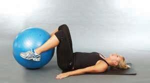 reverse curl with ball between legs (8 counts)