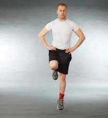 slowly bend at the knee and hip to perform a shallow, single leg squat