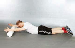maintain a squared neutrally aligned scapula position and a neutral lower back as the arms begin to extend, rolling the roller towards the trunk simultaneously extend the thoracic spine as the chest lifts from the floor maintain a neutral neck alignment and low back