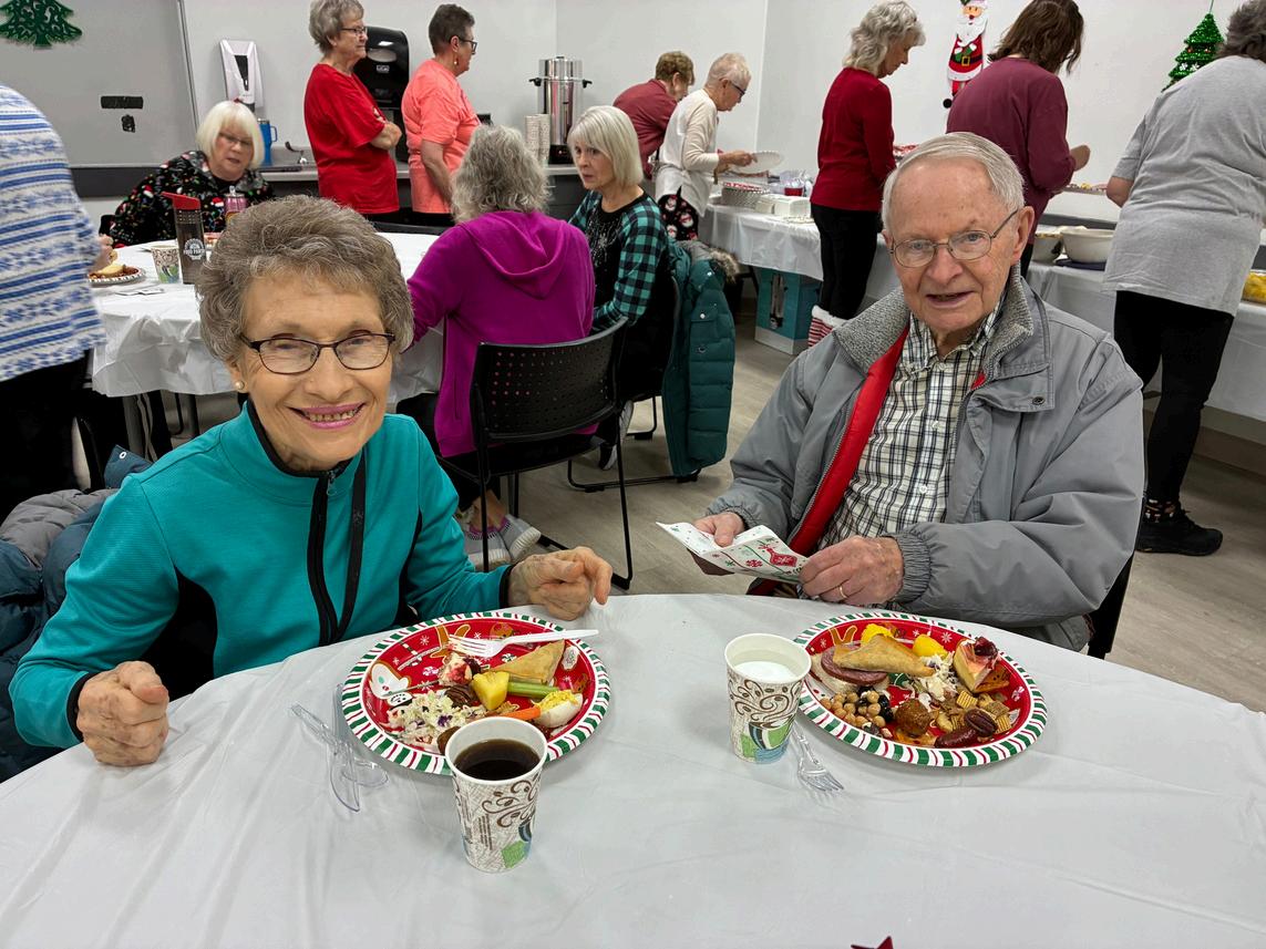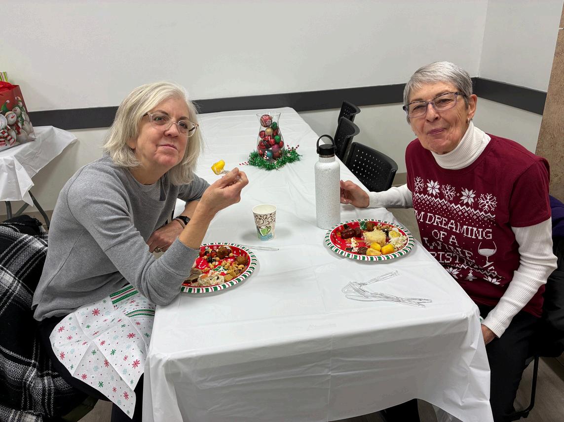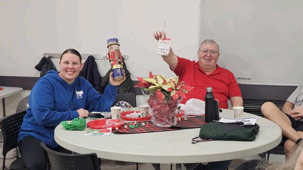 Aquatic exercise participants met for their annual Christmas Party. The room was filled with joy, fellowship and generosity. Members enjoyed an assortment of shared desserts while spending time socializing and celebrating the season together. Everyone in attendance was entered into festive giveaways, adding to the fun of the morning. Through gathering, money was raised and thoughtfully divided to support meaningful causes: one portion was donated to YMCA Childcare to help provide diapers & wipes for families in need, and the other portion was given to Bea Johnk to support the ministry of her artwork, which is being shared across eight continents as well as locally within the FargoMoorhead police officers, firefighters, and in prisons.