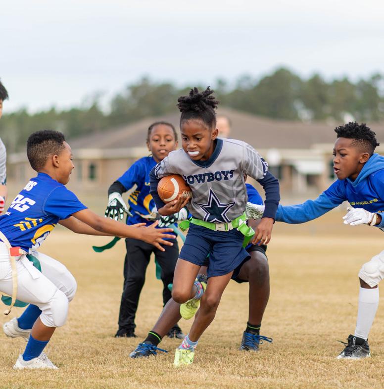 This program is part of the YMCA Youth Football League (YFL) and offers a non-contact, developmental football experience for children ages 8 to 12. It emphasizes fun, fundamentals, and teamwork, while promoting the YMCA’s core values: Caring, Honesty, Respect, and Responsibility.