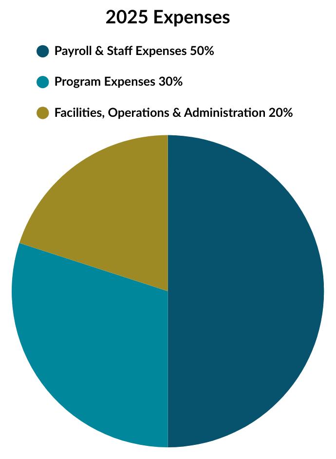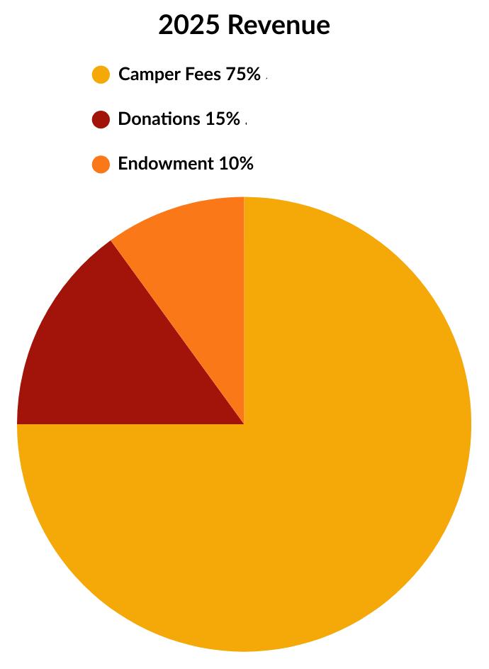 Operating costs rose 10.5% in 2025, driven by increased counselor pay, co-led trips, expanded staff training, and inflation across gear, travel and flights. Widji invested $97,971 in camper equipment, up more than 200% year over year. Despite these increases, a 17% rise in Annual Fund giving and a 7.3% increase in program fees kept net operating income in the black.