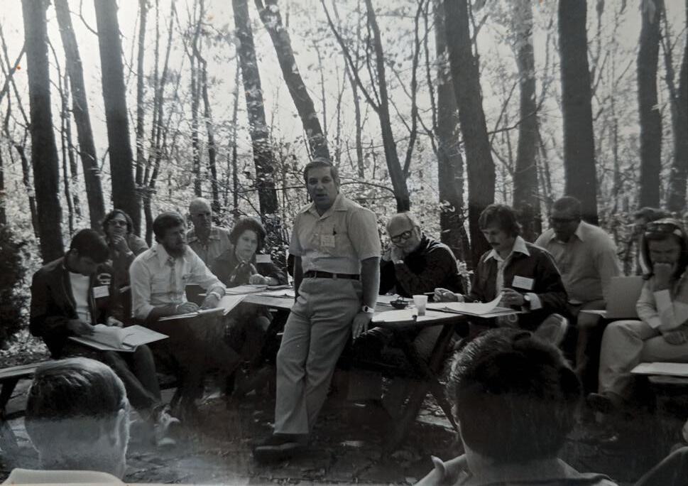 His wife Lindsay, who first came to Widji to work at the North Woods Resource Center (NWRC) in the mid-1970s, remembers her first night at camp. She got a ride up from the Twin Cities with the NWRC director, arriving around 10:00 p.m.
