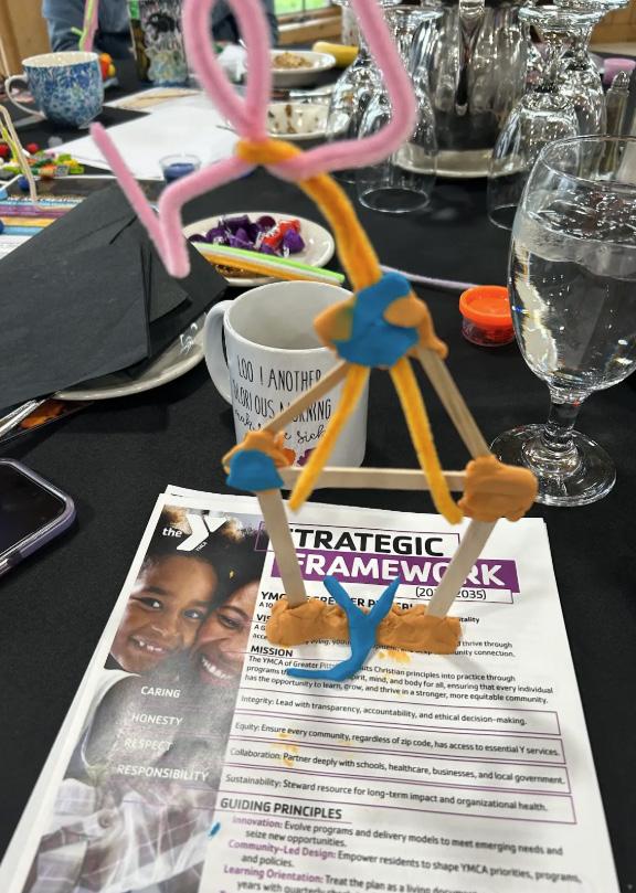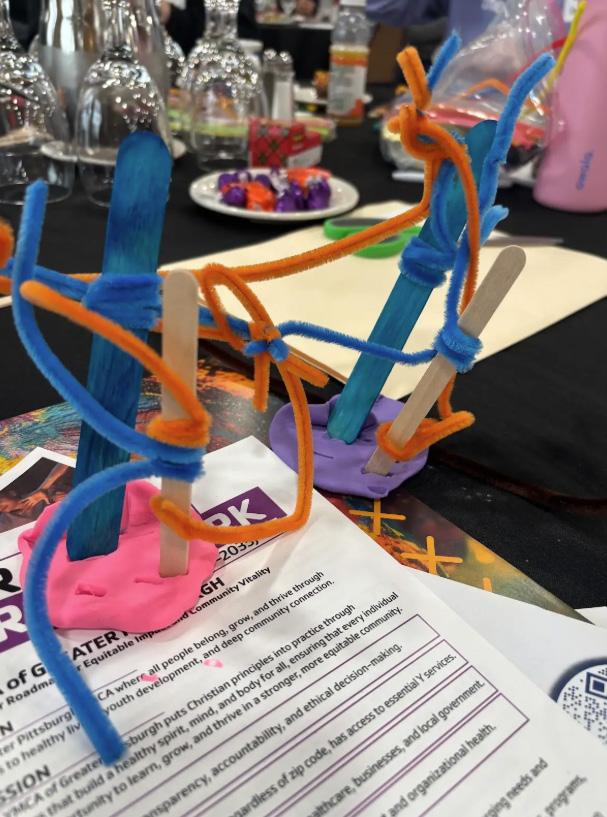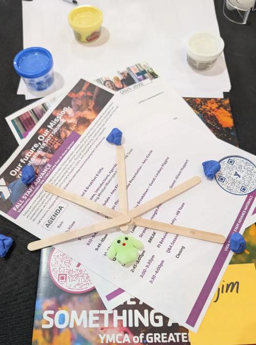 I made a stairway out of legos using the current YMCA colors to show our continued growth