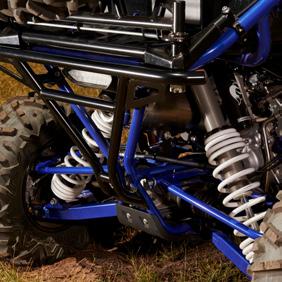 Alle utility- en vrijetijds-ATV’s en Side-by-Sides van Yamaha zijn uitgerust met dubbele onafhankelijke wieldraagarmen en met een onafhankelijke achterwielophanging. Al onze schokdempers zijn voorzien van een verstelbare veervoorspanning en sommige Sideby-Side-modellen zijn ook uitgerust met een verstelbare demping. Ze kunnen dus probleemloos worden aangepast aan uw persoonlijke rijstijl of aan de lading, en de wielophanging kan gemakkelijk worden gefinetuned om optimale prestaties te waarborgen.