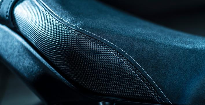 Les coutures contrastées élégantes renforcent l’allure et la sensation de qualité de la moto et vous procurent instantanément une sensation de confort une fois assis. La forme des pièces, telles que le réservoir de carburant et la selle, a été affinée à l’aide d’un processus répété de Kanno Hyoka (qui évalue les performances de la moto en fonction des perceptions et des réactions du pilote d’essai) pour vous donner la sensation de ne faire qu’un avec la machine.