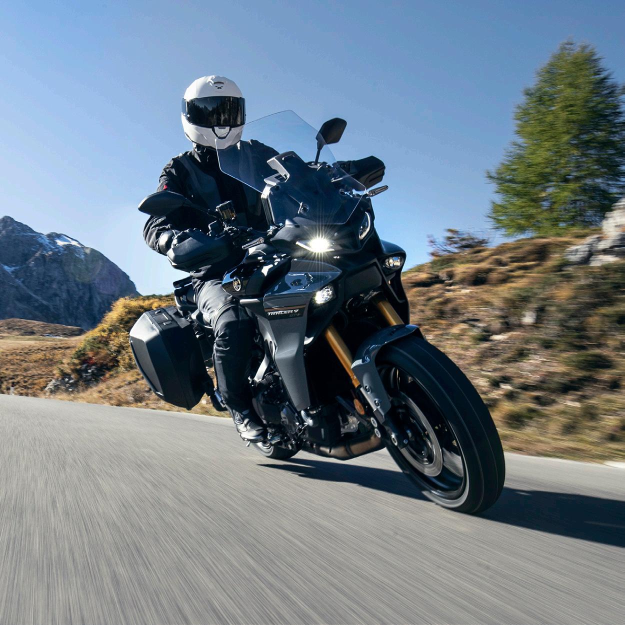 La TRACER 9 GT+ est équipée de poignées chauffantes parfaitement intégrées, de valises rigides, pouvant chacune accueillir un casque intégral, d’un éclairage à LED, y compris des feux de virage, ainsi que d’une béquille centrale : tout pour offrir un Touring haut de gamme.