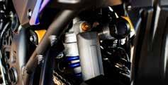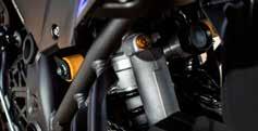 De compacte en lichtgewicht Öhlinsstuurdemper is dicht achter de bovenste drievoudige klem gemonteerd en zorgt voor extra bestuurbaarheid van het chassis, vooral op uitdagend offroad-terrein. Dankzij de 18 verschillende dempingsinstellingen kun je exact je voorkeursniveau voor bediening en feedback selecteren.