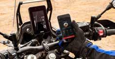 Het 5” TFT-kleurendisplay biedt drie verschillende schermweergaven - van een eigentijds digitaal ontwerp tot een meer traditionele analoge look - en er is ook een roadbook-achtig scherm met countdown-triptellers. De CCU van de motorfiets communiceert met de MyRide-app, zodat smsberichten en waarschuwingen voor inkomende oproepen op het scherm worden weergegeven. Zo ben je altijd verbonden en bereikbaar.
