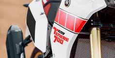 Voorzien van een moderne vertaling van de legendarische en opvallende wit/rode kleurcombinatie die werd gebruikt voor de eerste Ténéré-modellen waarmee in de Dakar werd geracet. De allereerste serie van de XT600 Ténéré uit 1983 werd ook voorzien van deze prominente Dakar-kleurencombinatie. Wit-rood contrast, gouden velgen en speedblock-design (ook geïnspireerd door de Dakar traditie). Details in de afwerking, zoals het zwarte stuur, maken het algehele ontwerp af.