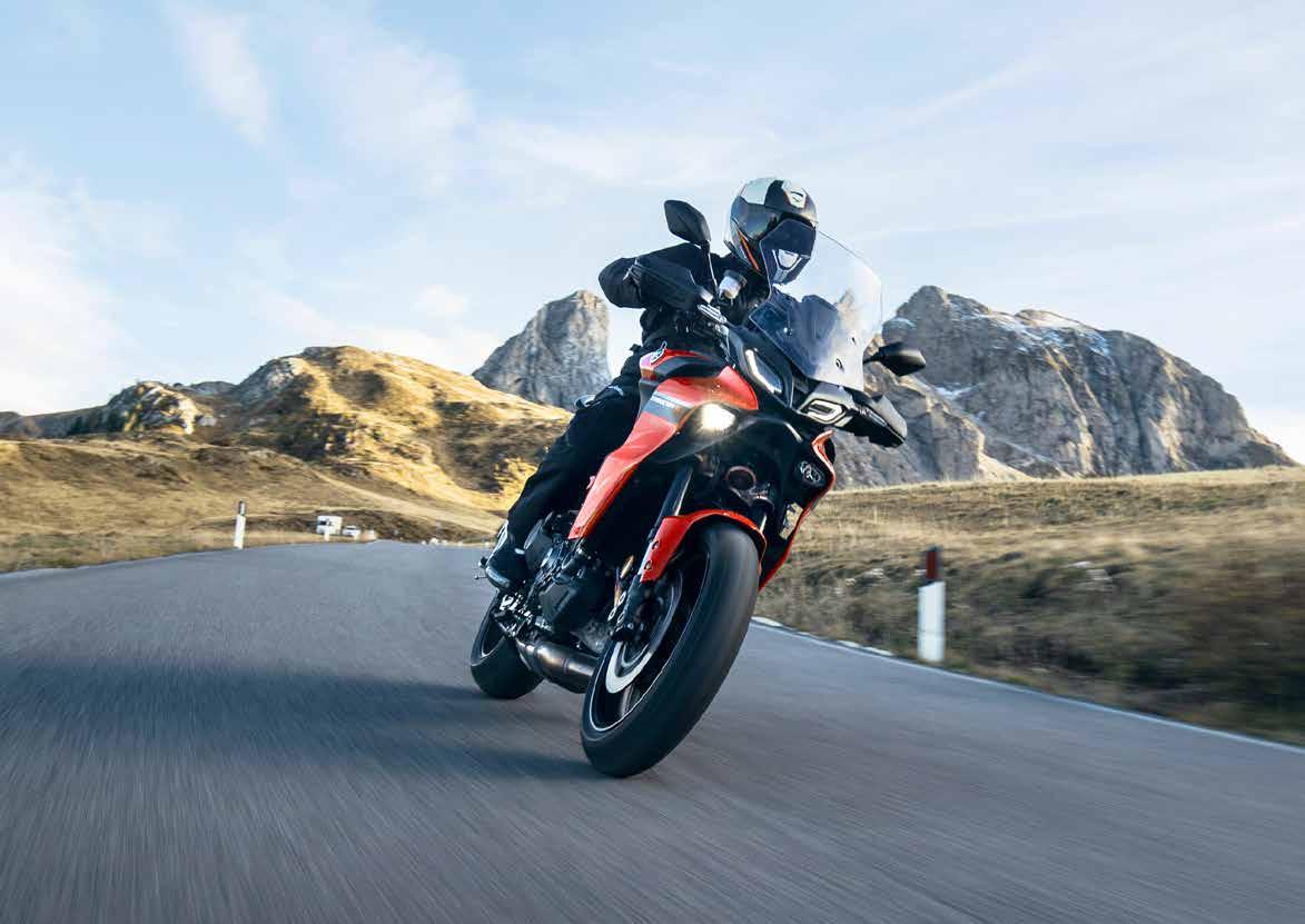 Een groot aantal belangrijke verfijningen, waaronder het nieuwe verstelbare scherm, het comfortabele zadel en de herziene achterwielophanging, zorgen voor een nog comfortabelere en opwindendere rit. Het 890 cc CP3 EU5-motorblok met grotere inhoud levert een nog sterker en soepeler koppel voor moeiteloze acceleratie, en het 7-inch TFT-instrumentenpaneel biedt smartphoneconnectiviteit en Garmin-navigatie op het volledige scherm.