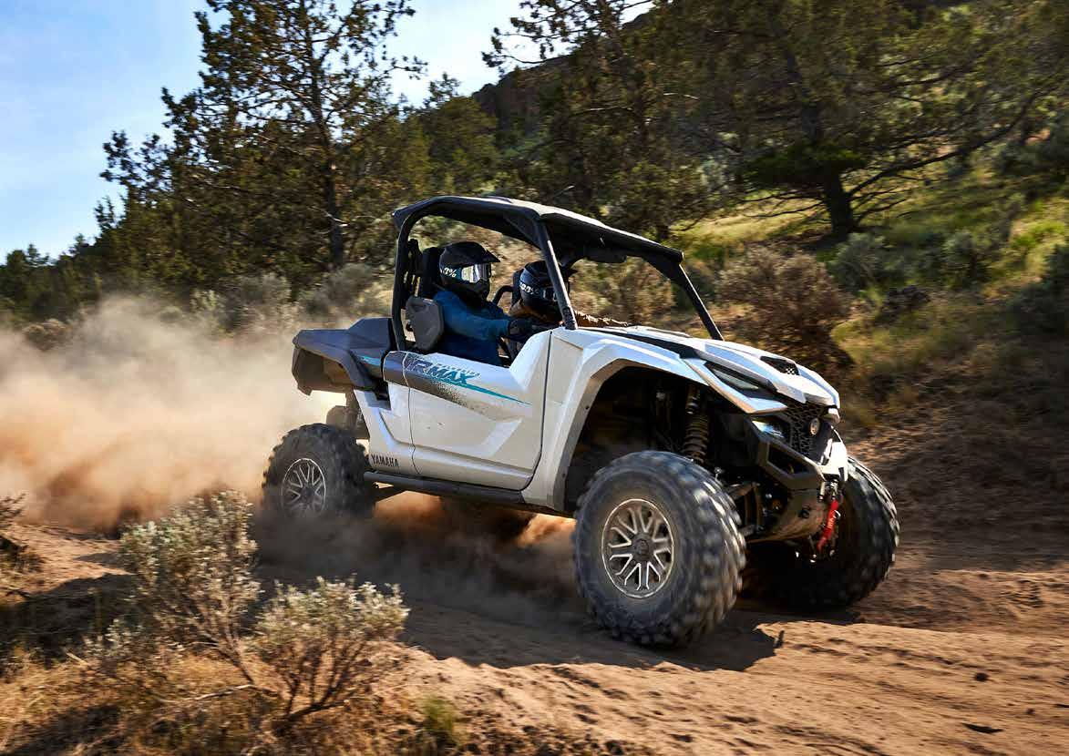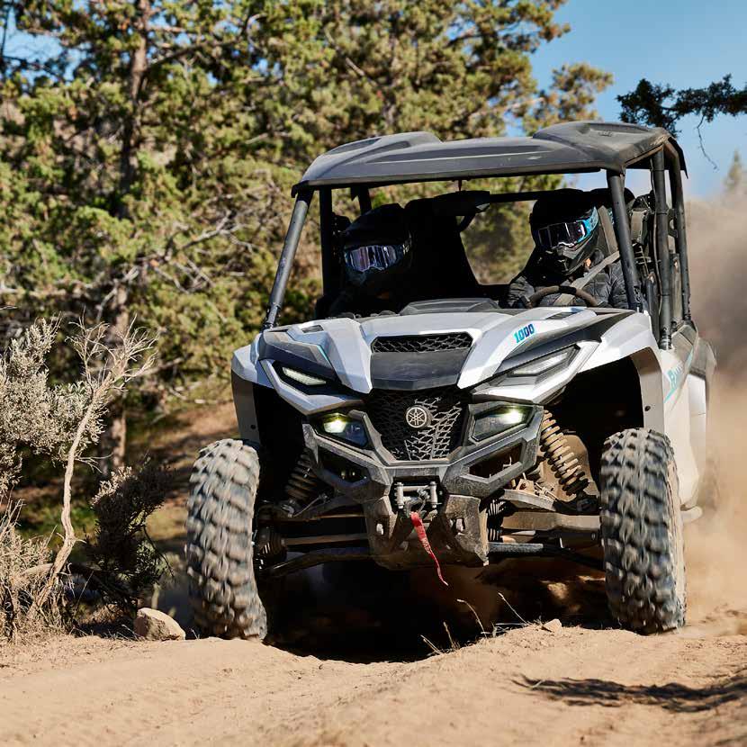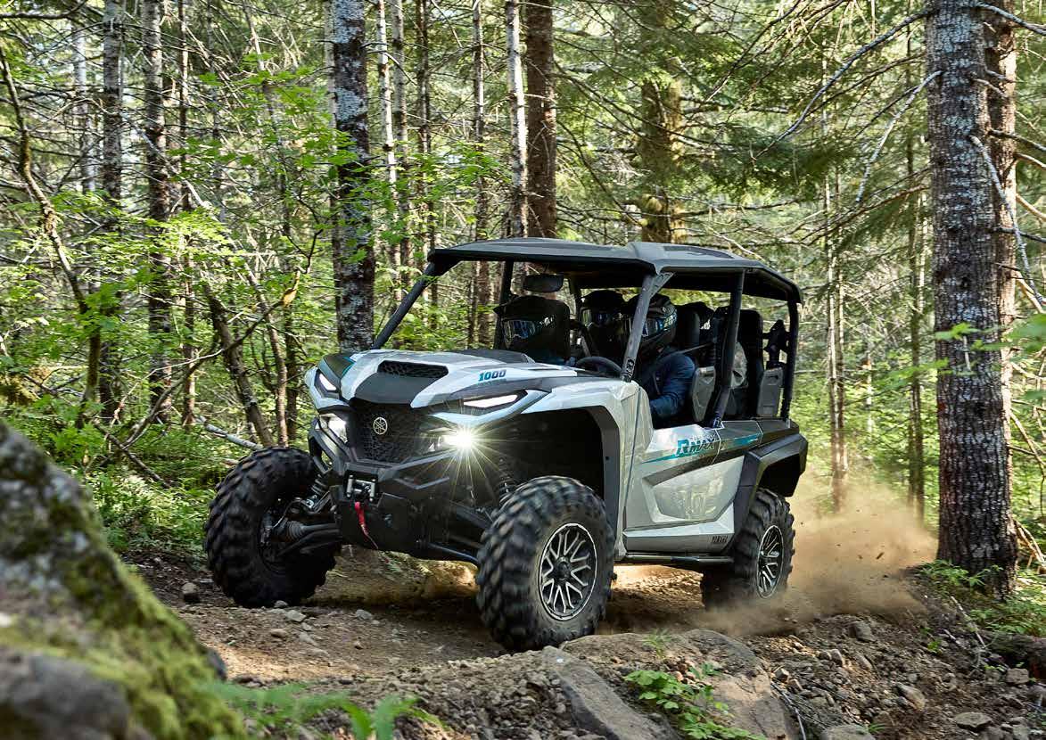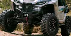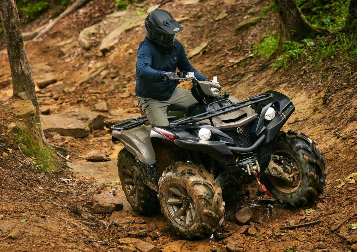 Los ATV con motores de hasta 50 cc están recomendados, exclusivamente, para ocupantes de 6 años o más y siempre bajo la supervisión de un adulto. Los ATV con motores de 70 a 90 cc están recomendados, exclusivamente, para ocupantes de 12 años o más y siempre bajo la supervisión de un adulto. Los ATV con motores de 90 cc o superior están recomendados, exclusivamente, para ocupantes de 16 años o más. Recomendamos el uso de vehículos side-by-side solo a conductores de 16 años o más. Los ATV y vehículos side-by-side de Yamaha están construidos para funcionar dentro de su concepción de diseño. Cuando sea necesario, en el manual de usuario se especificarán los pesos de remolcado seguros y la capacidad máxima de carga. No se deben exceder en ningún caso las capacidades recomendadas para evitar que la duración, la fiabilidad y, sobre todo, la seguridad del conductor y del pasajero (solo para los vehículos side-by-side) se vean afectadas. Los ATV pueden ser peligrosos de operar. Por tu seguridad: evita siempre las superficies pavimentadas. Los ATV y vehículos side-by-side están diseñados sólo para superficies sin pavimentar. Conducir sobre superficies pavimentadas puede afectar seriamente la conducción, e incluso provocar la pérdida del control. Lleva siempre puesto casco, gafas y ropa protectora. Nunca lleves pasajeros en vehículos ATV y usa siempre el cinturón de seguridad cuando viajes en un vehículo side-by-side. No intentes hacer acrobacias. Nunca conduzcas bajo los efectos del alcohol o las drogas. Evita el exceso de velocidad. Presta especial atención en terrenos difíciles. Por favor, “deja poca huella”: conduce siempre de manera responsable, respetando el medio ambiente, y las leyes nacionales y locales. Yamaha recomienda que todos los ocupantes de los ATV y vehículos side-byside reciban un curso de formación certificado. Para obtener información sobre la seguridad y la formación, consulta a tu concesionario o ponte en contacto con el distribuidor Yamaha de tu país. Las especificaciones y la apariencia de los productos Yamaha pueden variar sin previo aviso. Los que se muestran aquí tienen fines puramente ilustrativos y no implican una descripción contractual de los productos. Algunos modelos se muestran con accesorios opcionales. Los pilotos de este folleto son profesionales: no intentes imitarlos. Todos los ATV y vehículos side-by-side disponen de una garantía limitada de fábrica de 12 meses. Para obtener más información, consulta a tu concesionario.