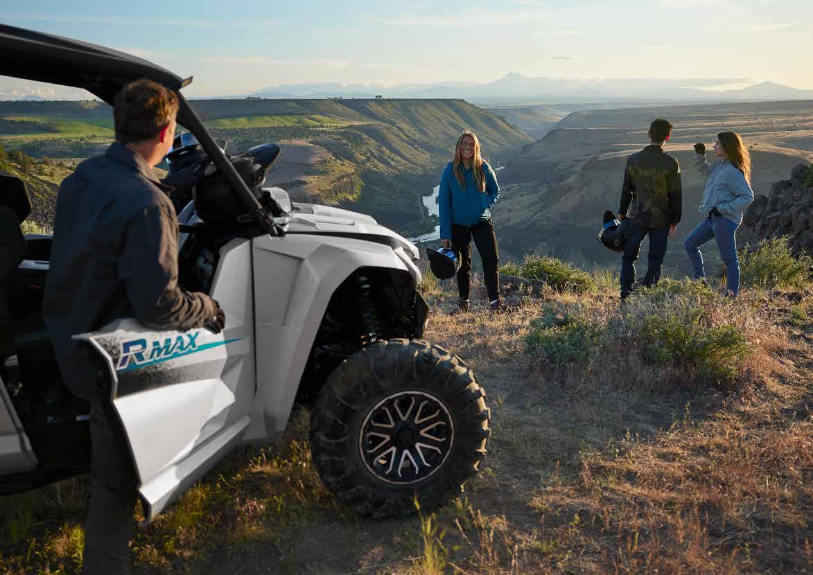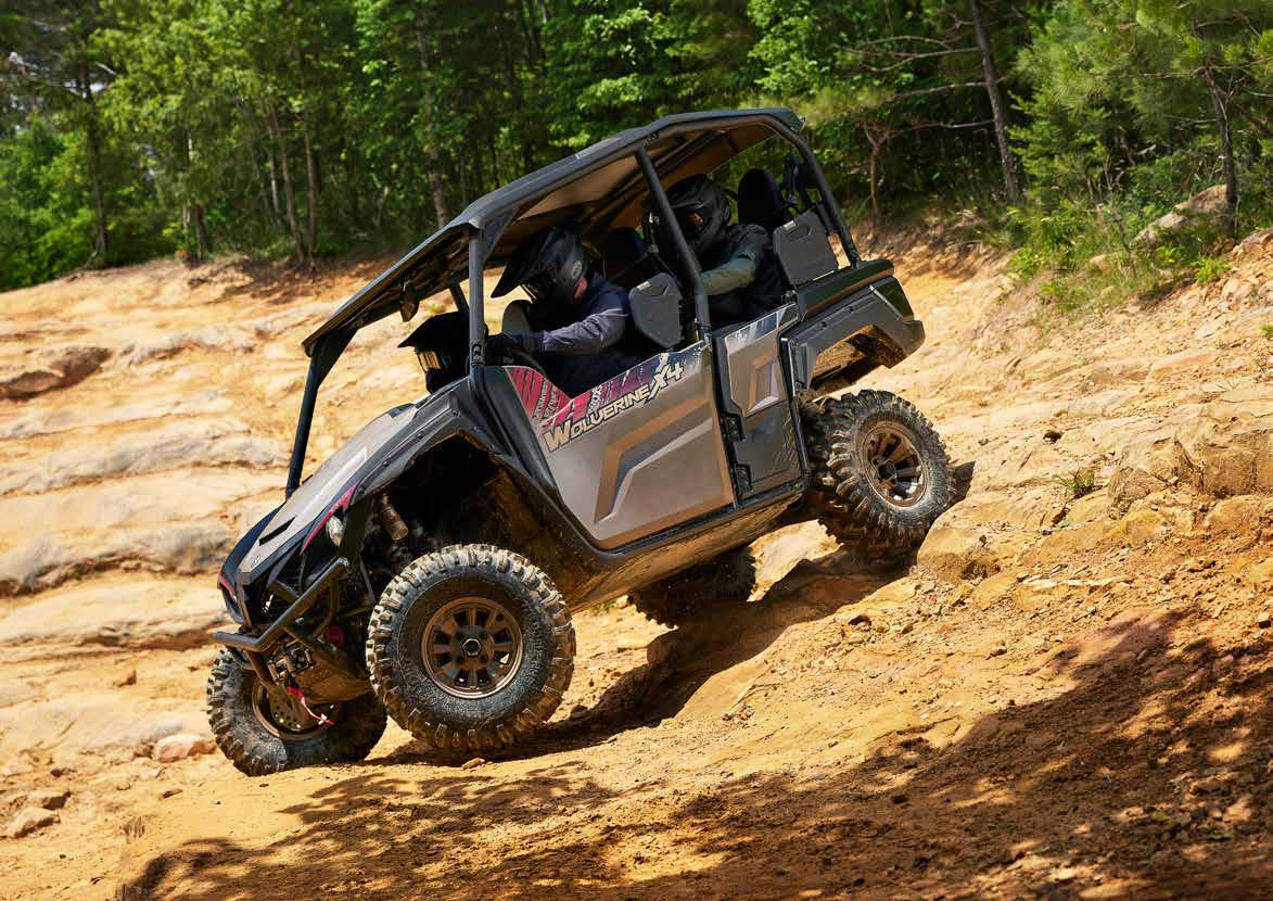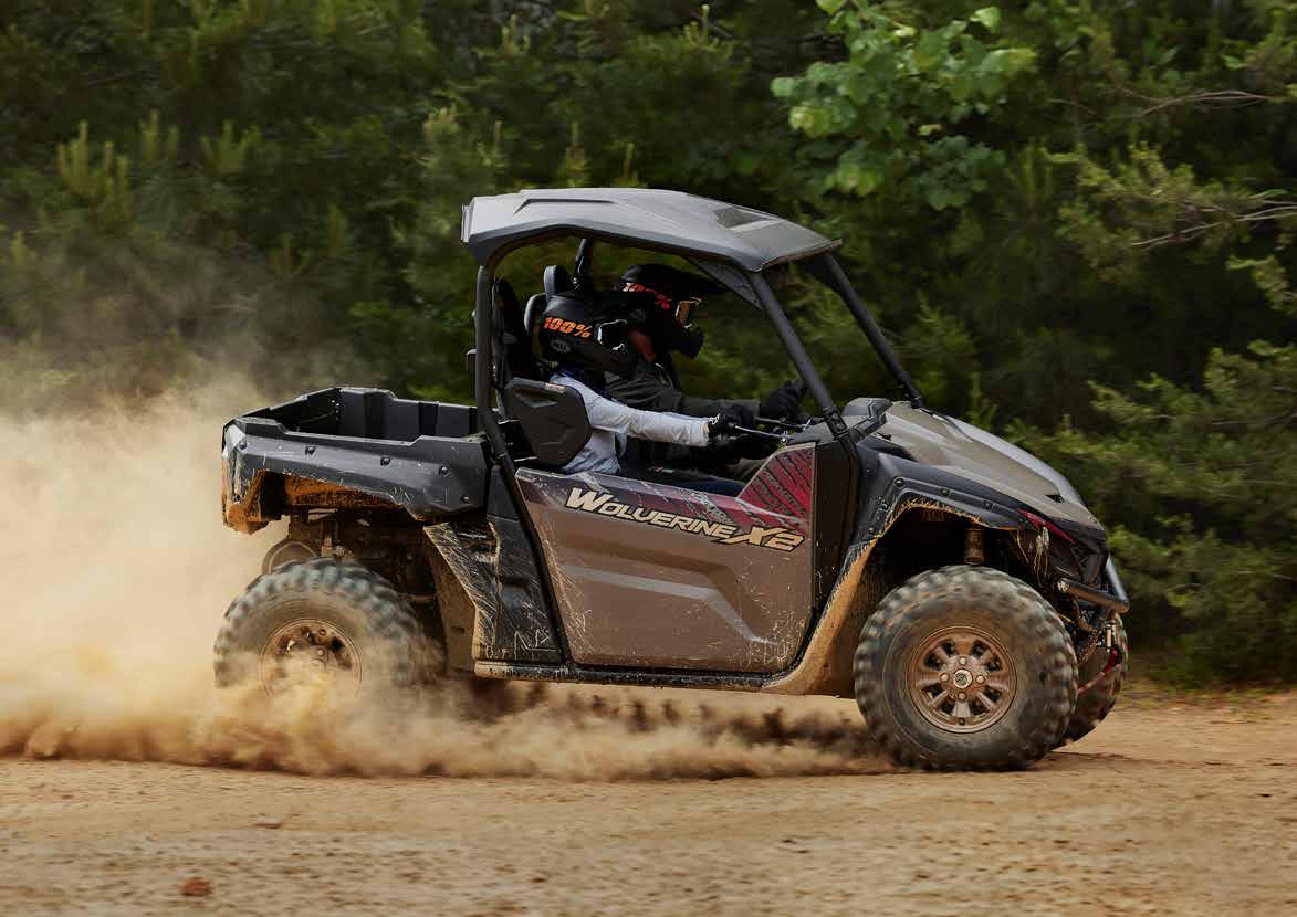Los ATV con motores de hasta 50 cc están recomendados, exclusivamente, para ocupantes de 6 años o más y siempre bajo la supervisión de un adulto. Los ATV con motores de 70 a 90 cc están recomendados, exclusivamente, para ocupantes de 12 años o más y siempre bajo la supervisión de un adulto. Los ATV con motores de 90 cc o superior están recomendados, exclusivamente, para ocupantes de 16 años o más. Recomendamos el uso de vehículos side-by-side solo a conductores de 16 años o más. Los ATV y vehículos side-by-side de Yamaha están construidos para funcionar dentro de su concepción de diseño. Cuando sea necesario, en el manual de usuario se especificarán los pesos de remolcado seguros y la capacidad máxima de carga. No se deben exceder en ningún caso las capacidades recomendadas para evitar que la duración, la fiabilidad y, sobre todo, la seguridad del conductor y del pasajero (solo para los vehículos side-by-side) se vean afectadas. Los ATV pueden ser peligrosos de operar. Por tu seguridad: evita siempre las superficies pavimentadas. Los ATV y vehículos side-by-side están diseñados sólo para superficies sin pavimentar. Conducir sobre superficies pavimentadas puede afectar seriamente la conducción, e incluso provocar la pérdida del control. Lleva siempre puesto casco, gafas y ropa protectora. Nunca lleves pasajeros en vehículos ATV y usa siempre el cinturón de seguridad cuando viajes en un vehículo side-by-side. No intentes hacer acrobacias. Nunca conduzcas bajo los efectos del alcohol o las drogas. Evita el exceso de velocidad. Presta especial atención en terrenos difíciles. Por favor, “deja poca huella”: conduce siempre de manera responsable, respetando el medio ambiente, y las leyes nacionales y locales. Yamaha recomienda que todos los ocupantes de los ATV y vehículos side-byside reciban un curso de formación certificado. Para obtener información sobre la seguridad y la formación, consulta a tu concesionario o ponte en contacto con el distribuidor Yamaha de tu país. Las especificaciones y la apariencia de los productos Yamaha pueden variar sin previo aviso. Los que se muestran aquí tienen fines puramente ilustrativos y no implican una descripción contractual de los productos. Algunos modelos se muestran con accesorios opcionales. Los pilotos de este folleto son profesionales: no intentes imitarlos. Todos los ATV y vehículos side-by-side disponen de una garantía limitada de fábrica de 12 meses. Para obtener más información, consulta a tu concesionario.