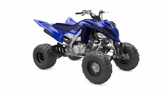 Los ATV con motores de hasta 50 cc están recomendados, exclusivamente, para ocupantes de 6 años o más y siempre bajo la supervisión de un adulto. Los ATV con motores de 70 a 90 cc están recomendados, exclusivamente, para ocupantes de 12 años o más y siempre bajo la supervisión de un adulto. Los ATV con motores de 90 cc o superior están recomendados, exclusivamente, para ocupantes de 16 años o más. Recomendamos el uso de vehículos side-by-side solo a conductores de 16 años o más. Los ATV y vehículos side-by-side de Yamaha están construidos para funcionar dentro de su concepción de diseño. Cuando sea necesario, en el manual de usuario se especificarán los pesos de remolcado seguros y la capacidad máxima de carga. No se deben exceder en ningún caso las capacidades recomendadas para evitar que la duración, la fiabilidad y, sobre todo, la seguridad del conductor y del pasajero (solo para los vehículos side-by-side) se vean afectadas. Los ATV pueden ser peligrosos de operar. Por tu seguridad: evita siempre las superficies pavimentadas. Los ATV y vehículos side-by-side están diseñados sólo para superficies sin pavimentar. Conducir sobre superficies pavimentadas puede afectar seriamente la conducción, e incluso provocar la pérdida del control. Lleva siempre puesto casco, gafas y ropa protectora. Nunca lleves pasajeros en vehículos ATV y usa siempre el cinturón de seguridad cuando viajes en un vehículo side-by-side. No intentes hacer acrobacias. Nunca conduzcas bajo los efectos del alcohol o las drogas. Evita el exceso de velocidad. Presta especial atención en terrenos difíciles. Por favor, “deja poca huella”: conduce siempre de manera responsable, respetando el medio ambiente, y las leyes nacionales y locales. Yamaha recomienda que todos los ocupantes de los ATV y vehículos side-byside reciban un curso de formación certificado. Para obtener información sobre la seguridad y la formación, consulta a tu concesionario o ponte en contacto con el distribuidor Yamaha de tu país. Las especificaciones y la apariencia de los productos Yamaha pueden variar sin previo aviso. Los que se muestran aquí tienen fines puramente ilustrativos y no implican una descripción contractual de los productos. Algunos modelos se muestran con accesorios opcionales. Los pilotos de este folleto son profesionales: no intentes imitarlos. Todos los ATV y vehículos side-by-side disponen de una garantía limitada de fábrica de 12 meses. Para obtener más información, consulta a tu concesionario.