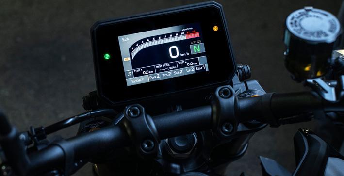 L’écran TFT couleur de 4,2 pouces offre une synthèse claire de toutes les informations nécessaires à vos trajets. Le commutateur de menu sur la poignée de droite vous permet de passer rapidement d’un écran à l’autre, et le commutateur « Mode/Select » à gauche change individuellement les réglages des aides électroniques au pilotage. Vous pouvez aussi sélectionner tous les réglages à l’aide du système YRC à quatre modes.
