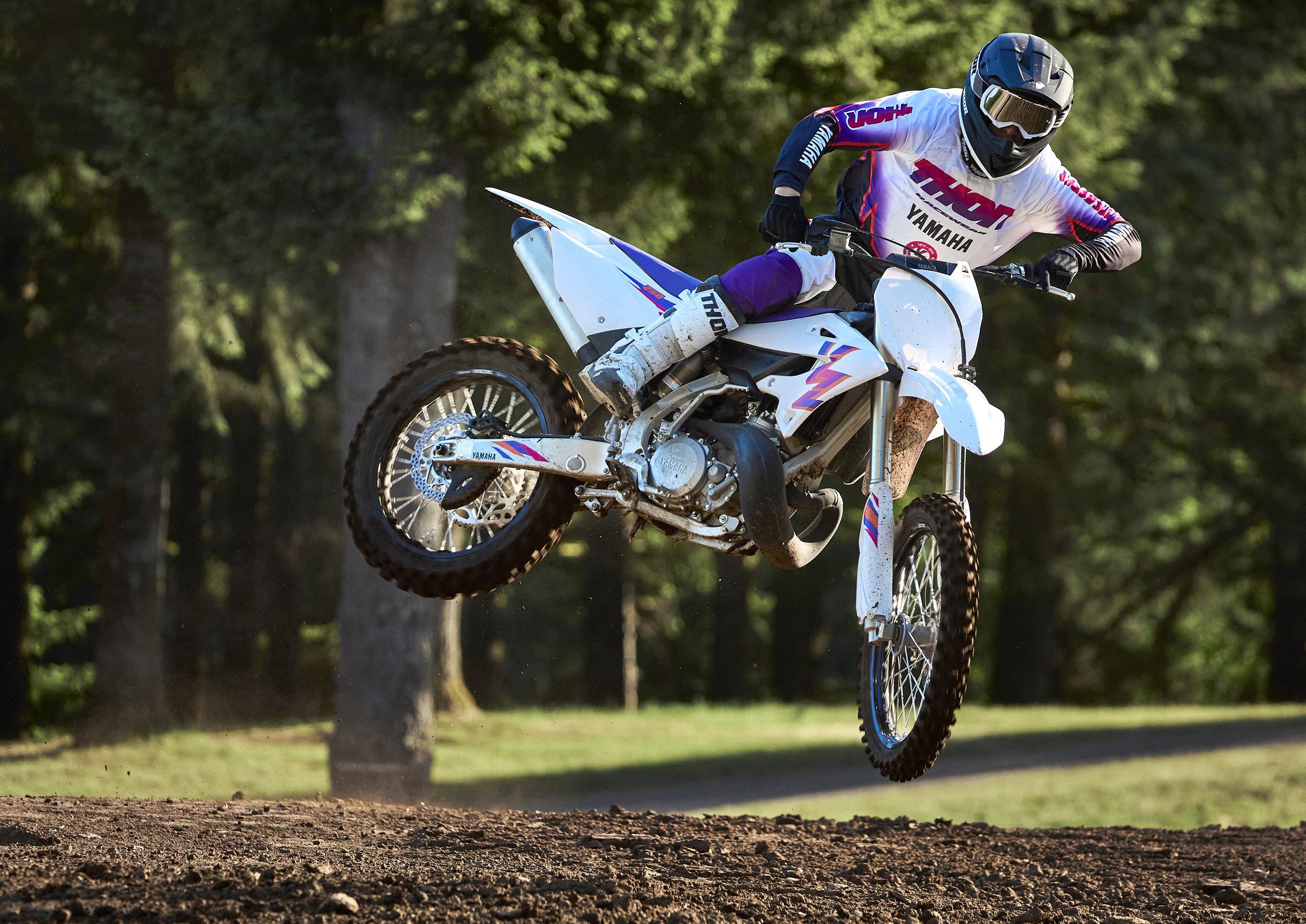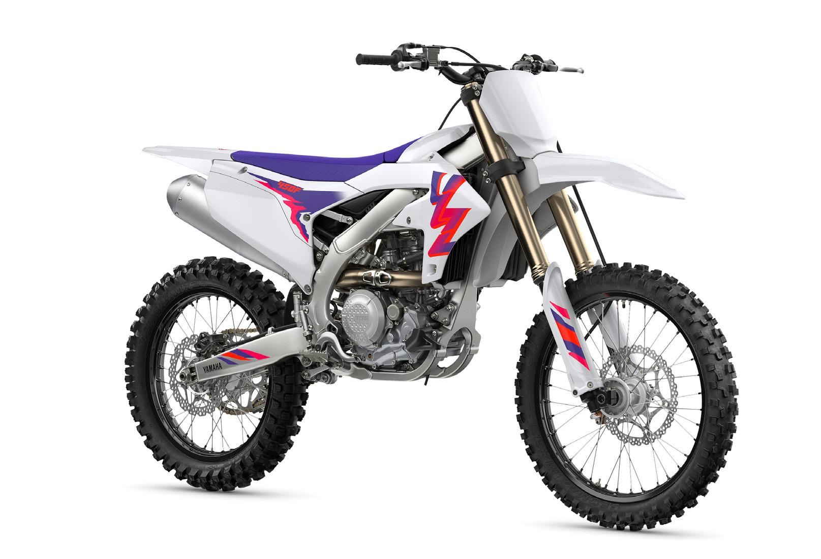 De exclusieve nieuwe YZ450F 50th Anniversary Edition zal zeker in het middelpunt van de belangstelling staan in de paddock en op het circuit. Deze speciale editie is een eerbetoon om te vieren dat de YZ al vijftig jaar onafgebroken in productie is. Deze motor heeft op 1990 geïnspireerde Anniversary White kuipwerk met paars/roze graphics, een paars zadel en zwarte velgen.