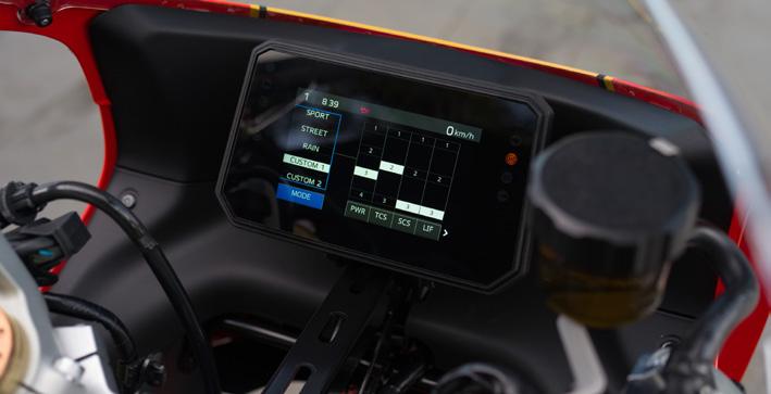 De geavanceerde, van de R1 afgeleide 6-assige IMU bestuurt het uitgebreide pakket rijhulpsystemen, waaronder Lean Sensitive Traction Control en ABS, Slide Control en het Lift Control-systeem voor het voorwiel. Met Yamaha Ride Control kun je de karakteristiek van het motorvermogen en het interventieniveau van de hellingshoekgevoelige rijhulpsystemen selecteren op basis van je voorkeuren en de wegomstandigheden. Drie vooraf ingestelde, geïntegreerde rijmodi, ‘SPORT’, ‘STREET’ en ‘RAIN’, met fabrieksinstellingen voor verschillende interventieniveaus onder verschillende omstandigheden, worden aangevuld met handmatig instelbare ‘CUSTOM’instellingen.