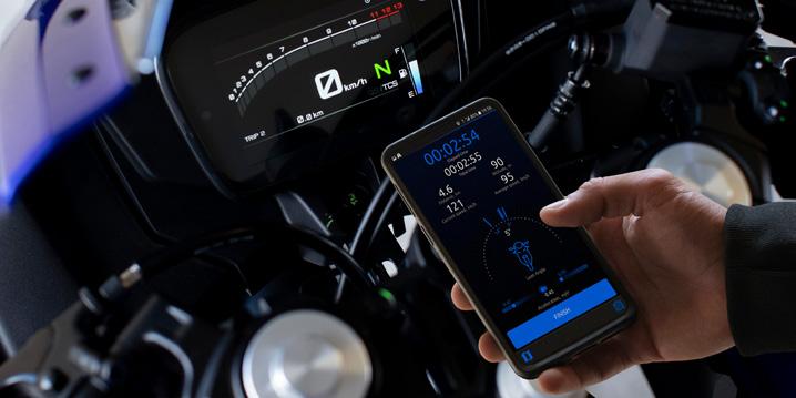 Met de gratis Yamaha MyRide-app haal je nog meer uit elke rit. Houd je prestaties bij en leg al je gegevens vast, zoals de hellingshoek, acceleratie, doorschakelsnelheden en de remkracht. Je kunt elke rit delen en vergelijken met andere MyRide-gebruikers of op sociale media. Je kunt je route ook exporteren als een GPX-bestand.