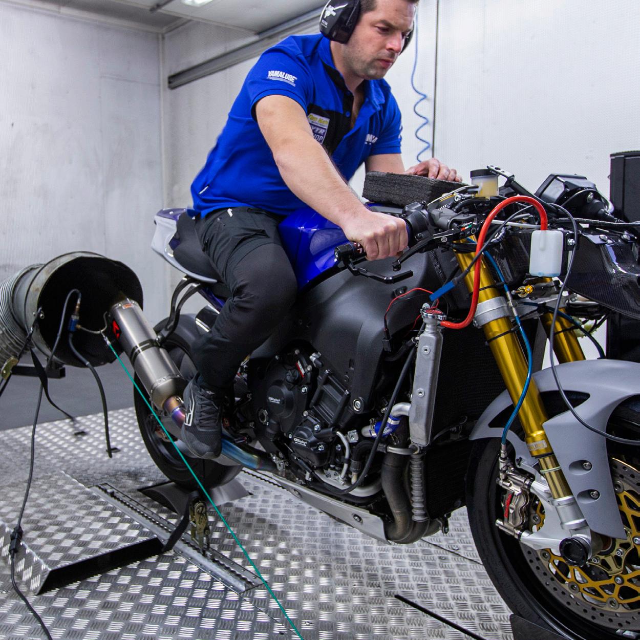 Elk onderdeel van de geavanceerde technologie op de R1 is ontwikkeld vanuit de kennis die is opgedaan door Yamaha’s betrokkenheid bij races op het hoogste niveau. Het opmerkelijke 998 cc viercilinder EU5 crossplane motorblok is een directe afstammeling van de M1, terwijl het aerodynamische kuipwerk rechtstreeks is ontleend aan de ontwikkelingen op het circuit.