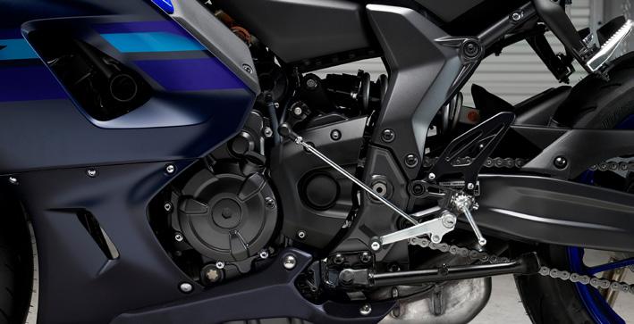 Een belangrijke factor bij optimale prestaties is een zo klein mogelijk frontaal oppervlak. Dankzij de compacte afmetingen van de CP2-motor zijn de ontwerpers van Yamaha erin geslaagd om een atletisch kuipwerk te ontwikkelen dat slanker is dan dat van alle andere modellen uit de R-serie. Met de sportieve voorovergebogen rijpositie snijdt de R7 soepel en efficiënt door de wind.