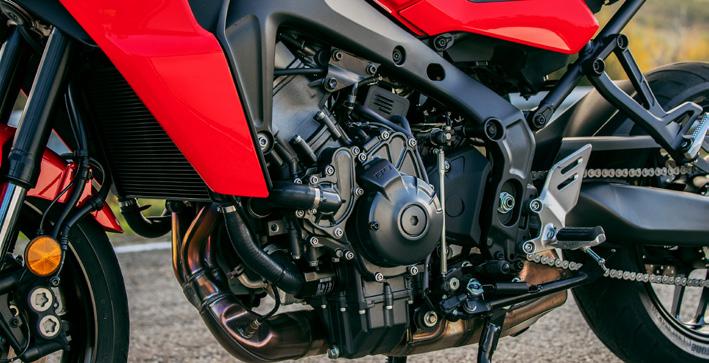 Développant un couple généreux et linéaire à bas et à moyen régime, le moteur CP3 de 890 cc à refroidissement liquide produit des accélérations exceptionnelles et offre des vitesses de sortie de virage palpitantes – ce qui en fait la TRACER 9 la plus sportive. Les rapports de vitesse optimisés et l’embrayage A&S délivrent des performances tout en souplesse - et la sonorité travaillée de l’échappement à double sortie et du système d’admission amplifie les sensations de chaque sortie.