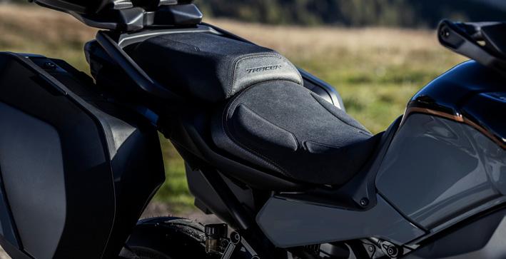 Plus de confort sur longue distance grâce à une selle redessinée. La nouvelle forme et la densité inédite de mousse améliorent le confort d’assise lors des longs voyages. Le matériau en similicuir, le gaufrage et les surpiqûres soulignent la qualité de la selle.