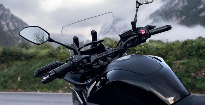 Les poignées chauffantes sont commandées grâce à une molette de défilement sur le guidon et le niveau de chauffe s’affiche sur le tableau de bord TFT. Le caoutchouc plus fin des poignées permet une transmission efficace de la chaleur pour un confort de conduite optimisé.
