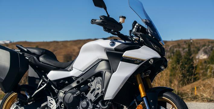 La TRACER 9 GT est proposée dans une nouvelle finition exclusive Pure White associée à une nouvelle déco sur les caches latéraux pour conférer plus d’élégance. La TRACER 9 GT est également disponible en Midnight Black