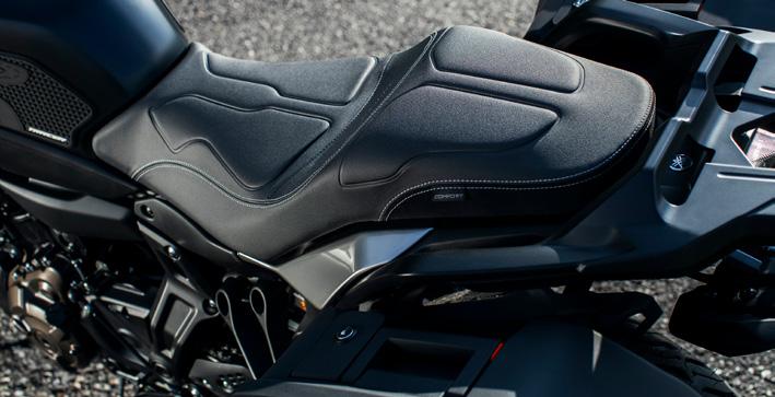 Langeafstandstochten zijn comfortabeler met een nieuw ontworpen zadel. De herziene vorm en schuimdichtheid geven een betere ondersteuning voor lange rijdagen en het leerachtige materiaal, de reliëfs en stiksels geven de prettigere zithouding een premium imago.